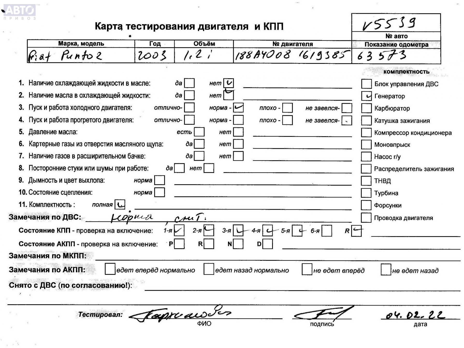| Марка / Модель / Год: | Fiat Punto II (1999-2005) 2002 |