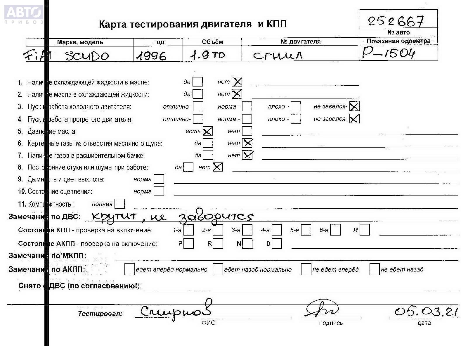 | Марка / Модель / Год: | Fiat Scudo (1995-2007) 1996 |