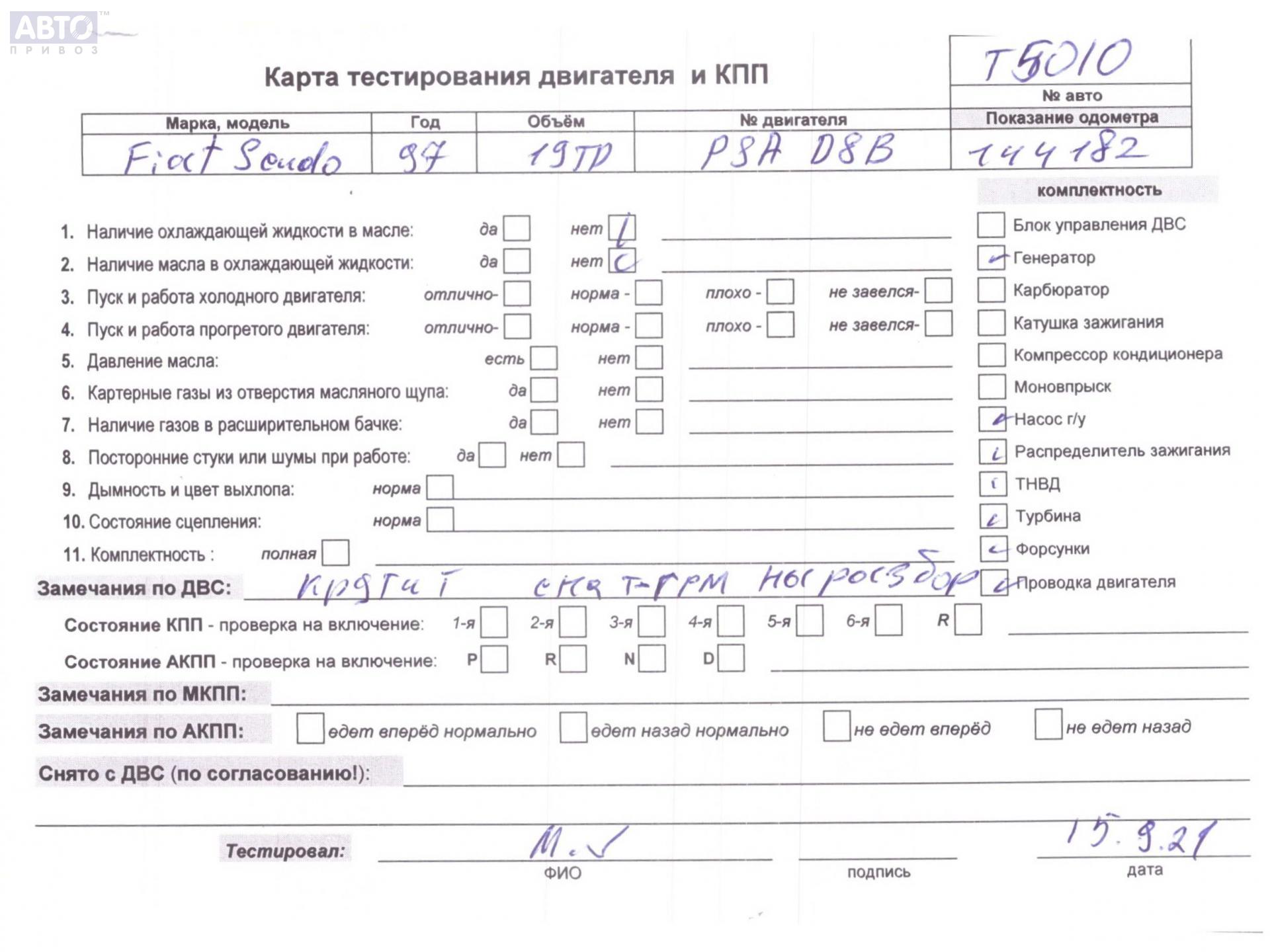 | Автомобиль / VIN: | T5010 ZFA22000012327099 |