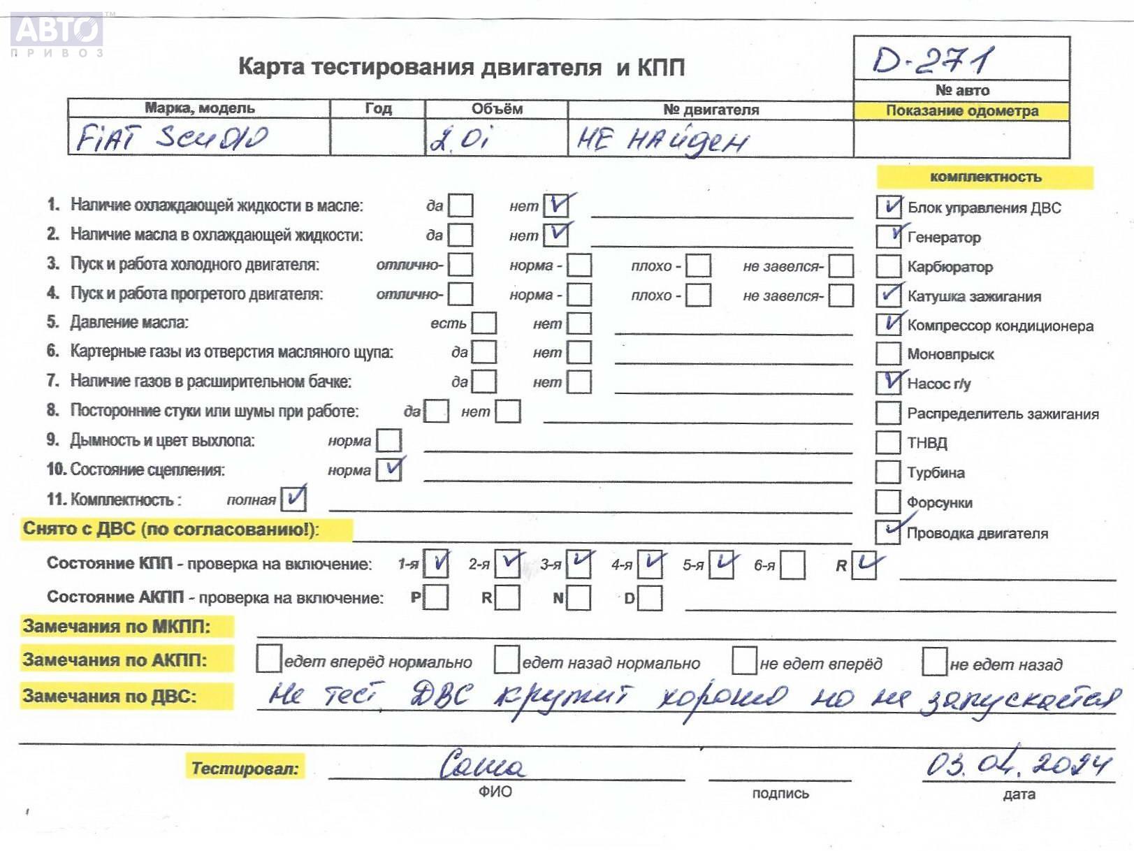 | Автомобиль / VIN: | D0271 ZFA22000012910437 |