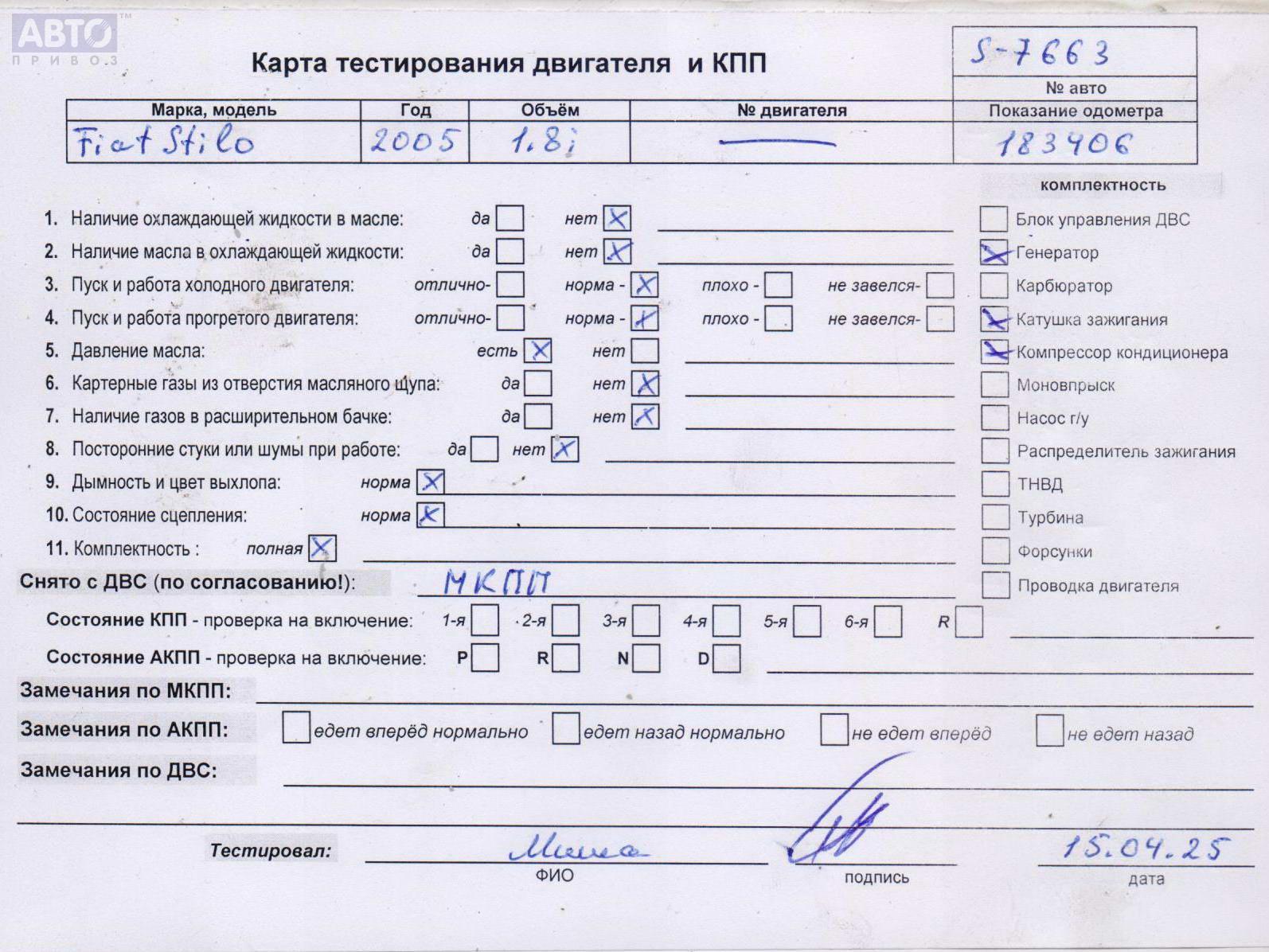 | Марка / Модель / Год: | Fiat Stilo 2005 |