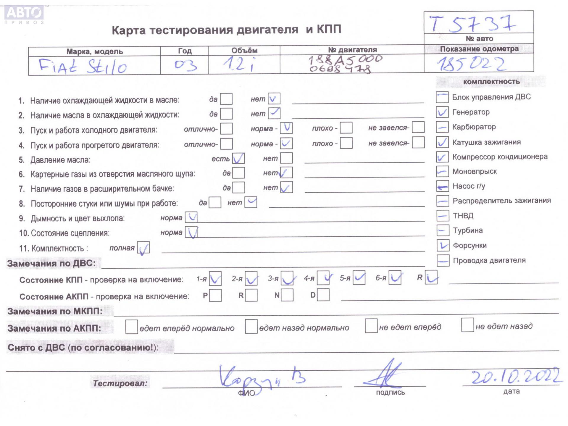 | Марка / Модель / Год: | Fiat Stilo 2002 |