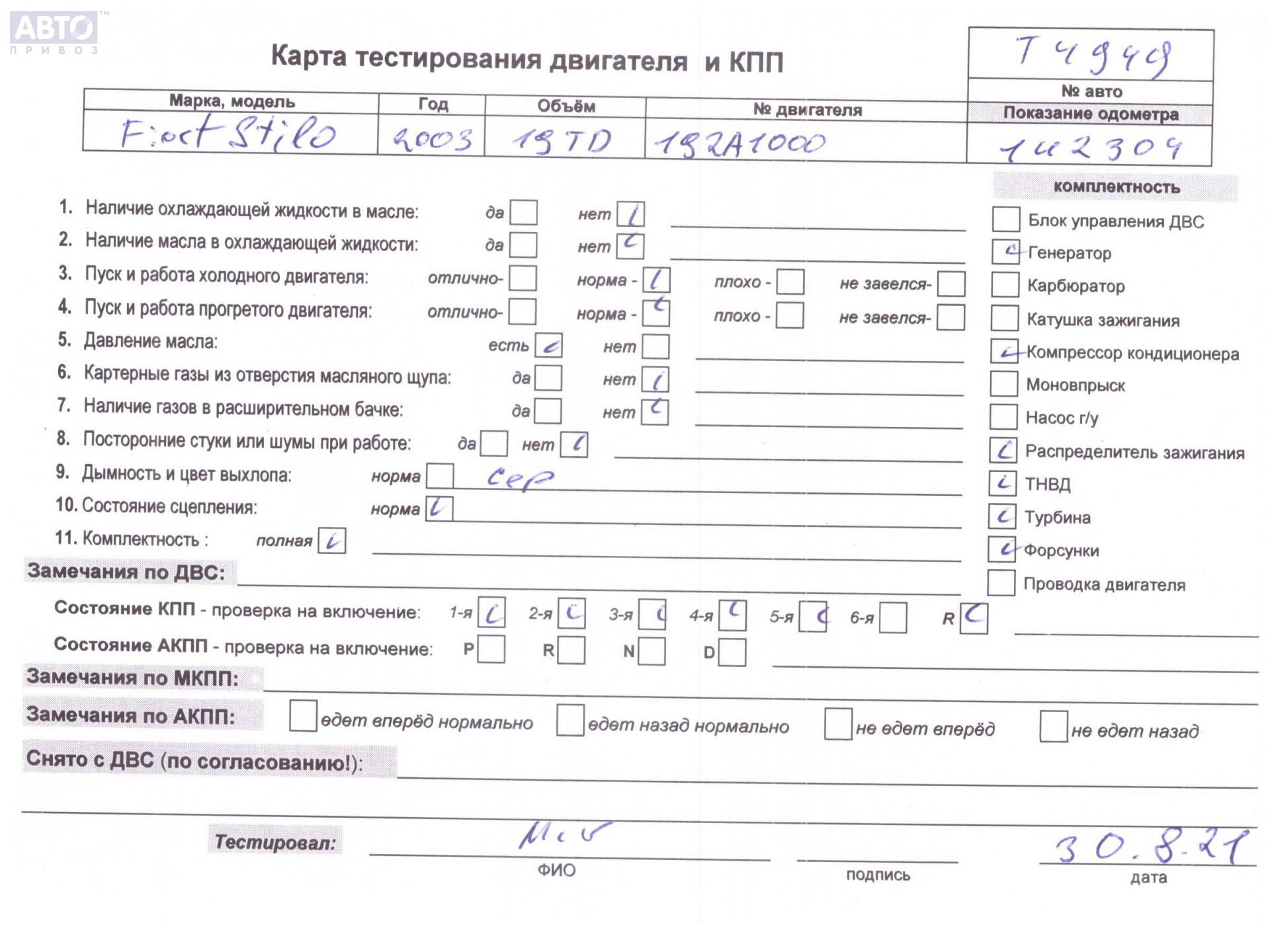 | Марка / Модель / Год: | Fiat Stilo 2003 |