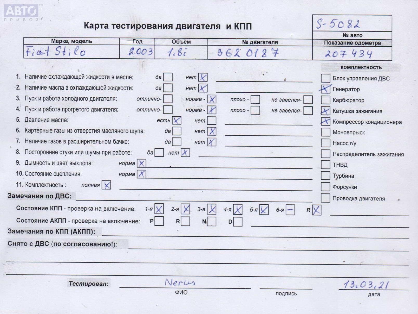 | Марка / Модель / Год: | Fiat Stilo 2003 |