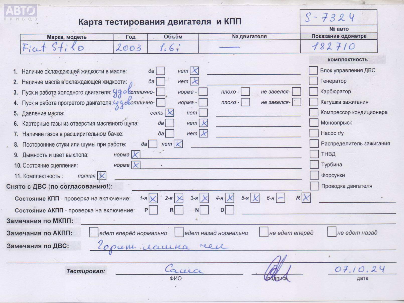 | Марка / Модель / Год: | Fiat Stilo 2003 |