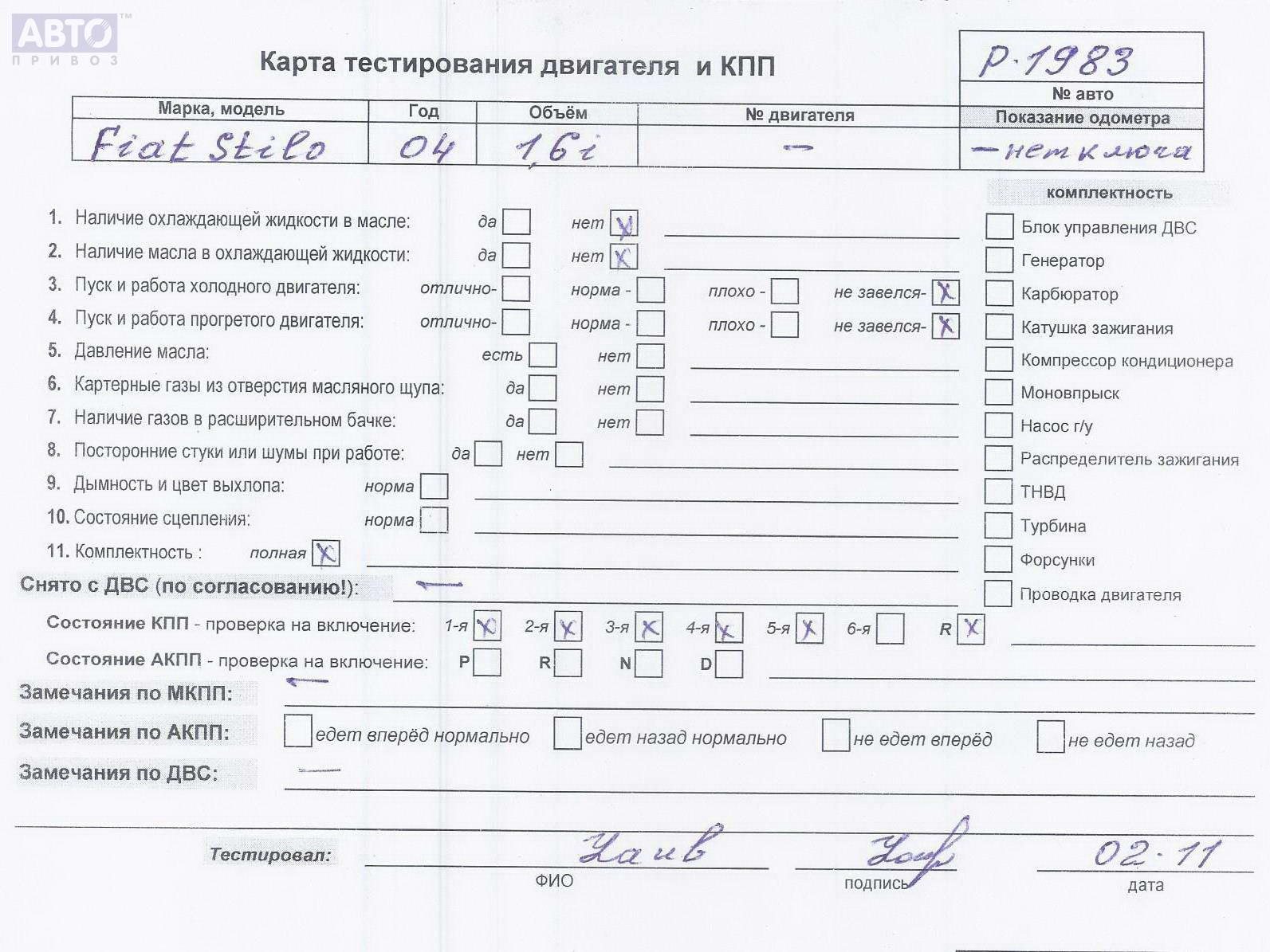 | Марка / Модель / Год: | Fiat Stilo 2004 |