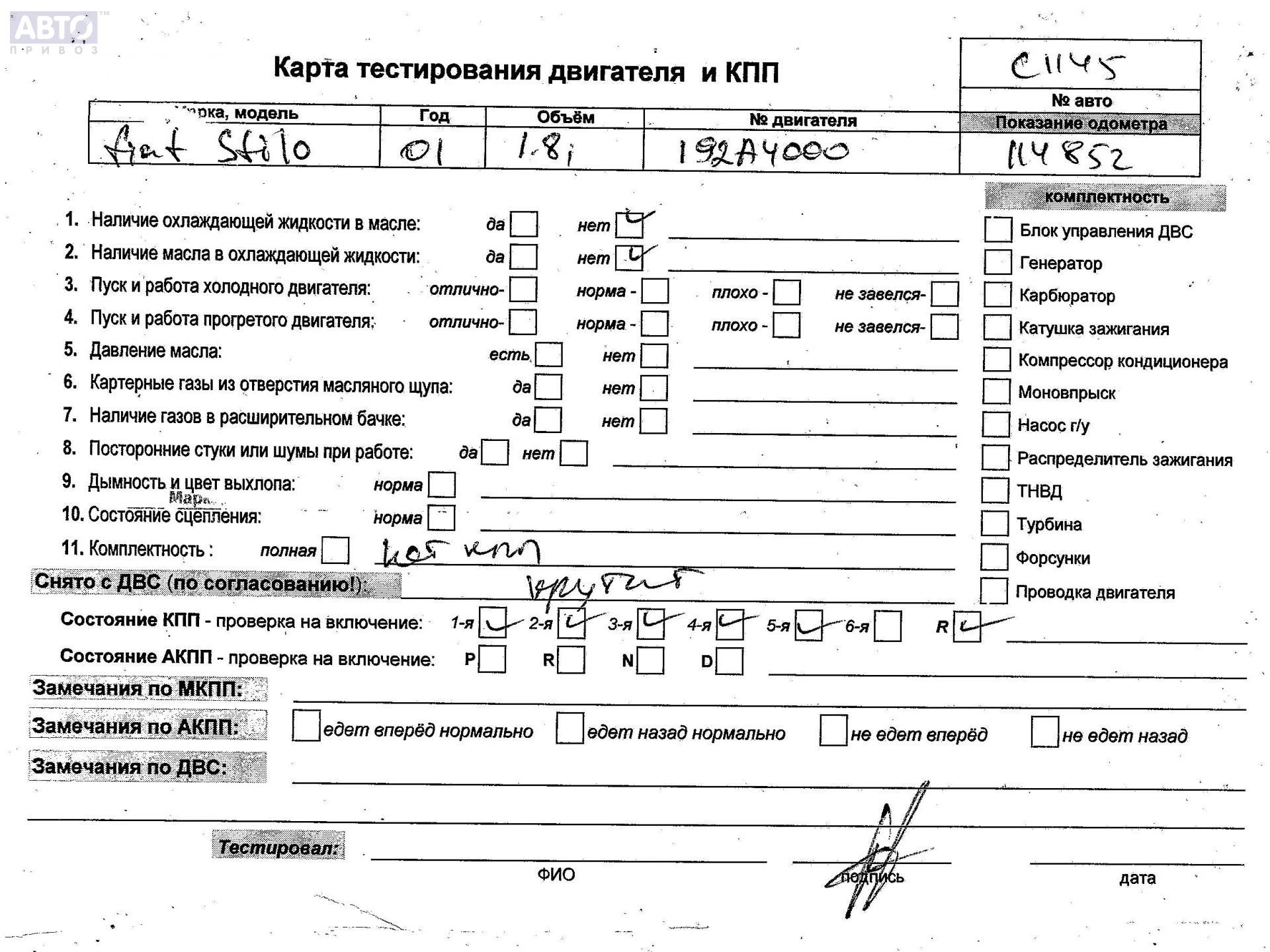 | Марка / Модель / Год: | Fiat Stilo 2001 |