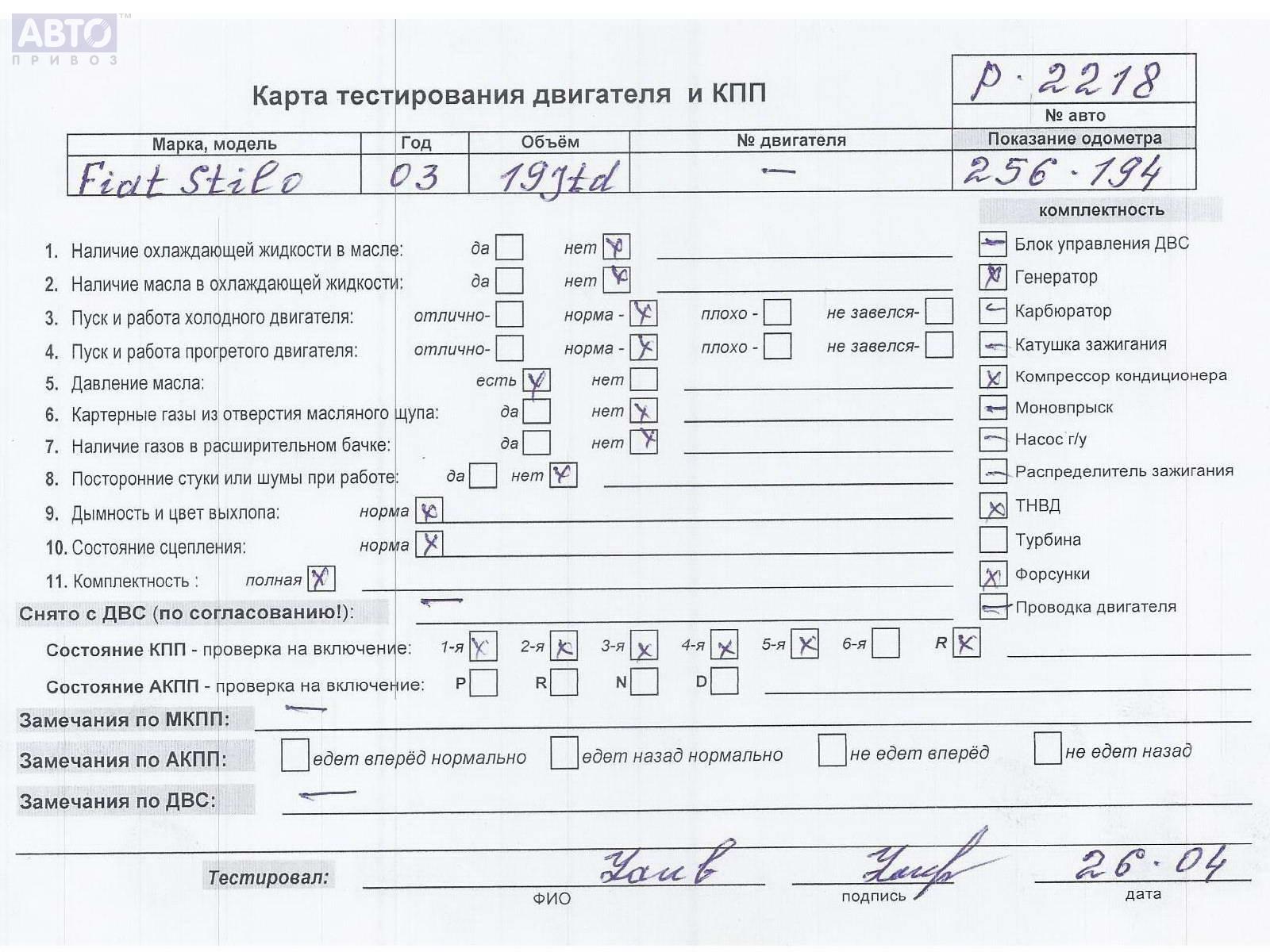 | Марка / Модель / Год: | Fiat Stilo 2003 |
