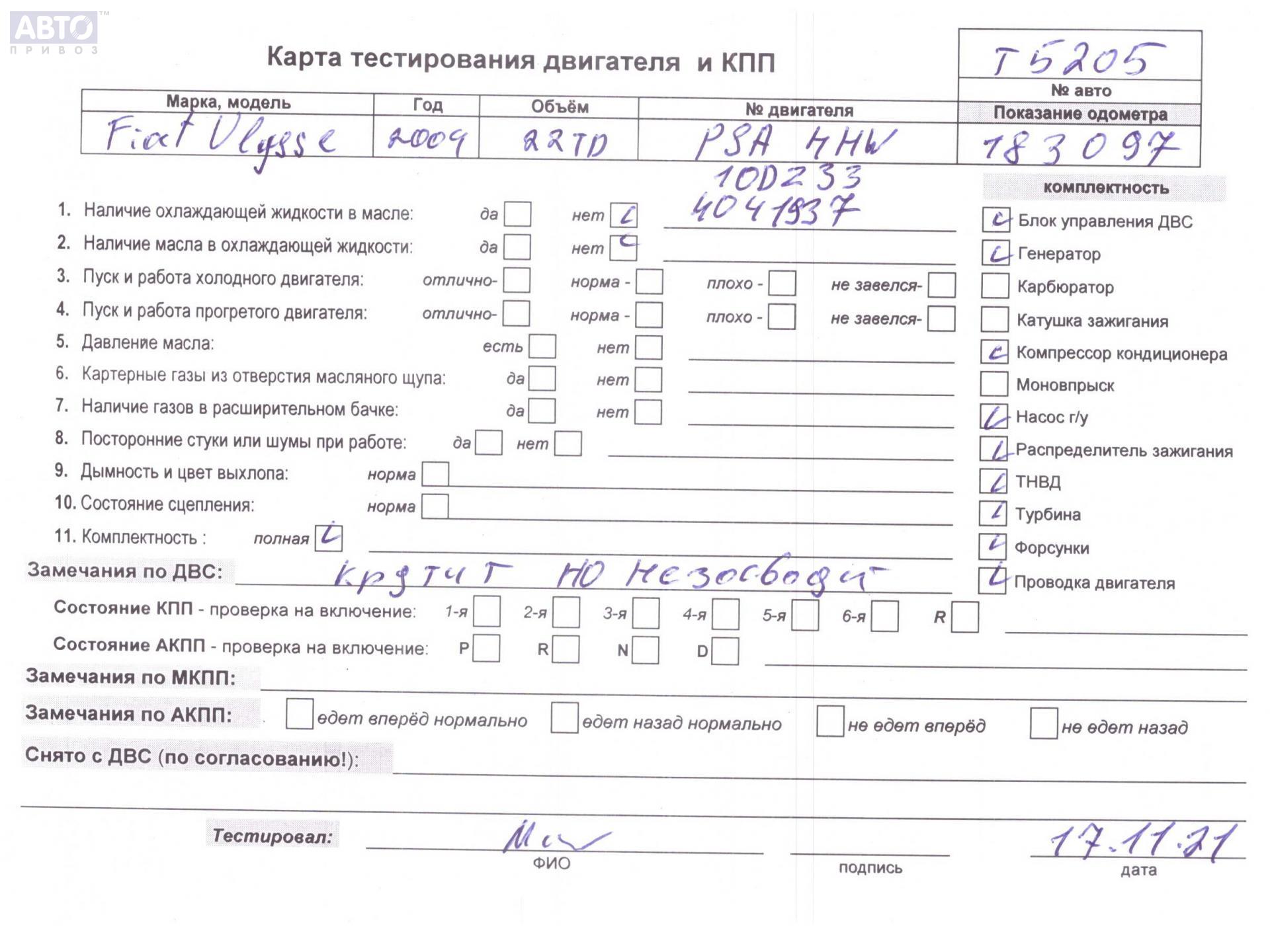 | Автомобиль / VIN: | T5205 ZFA17900013185262 |