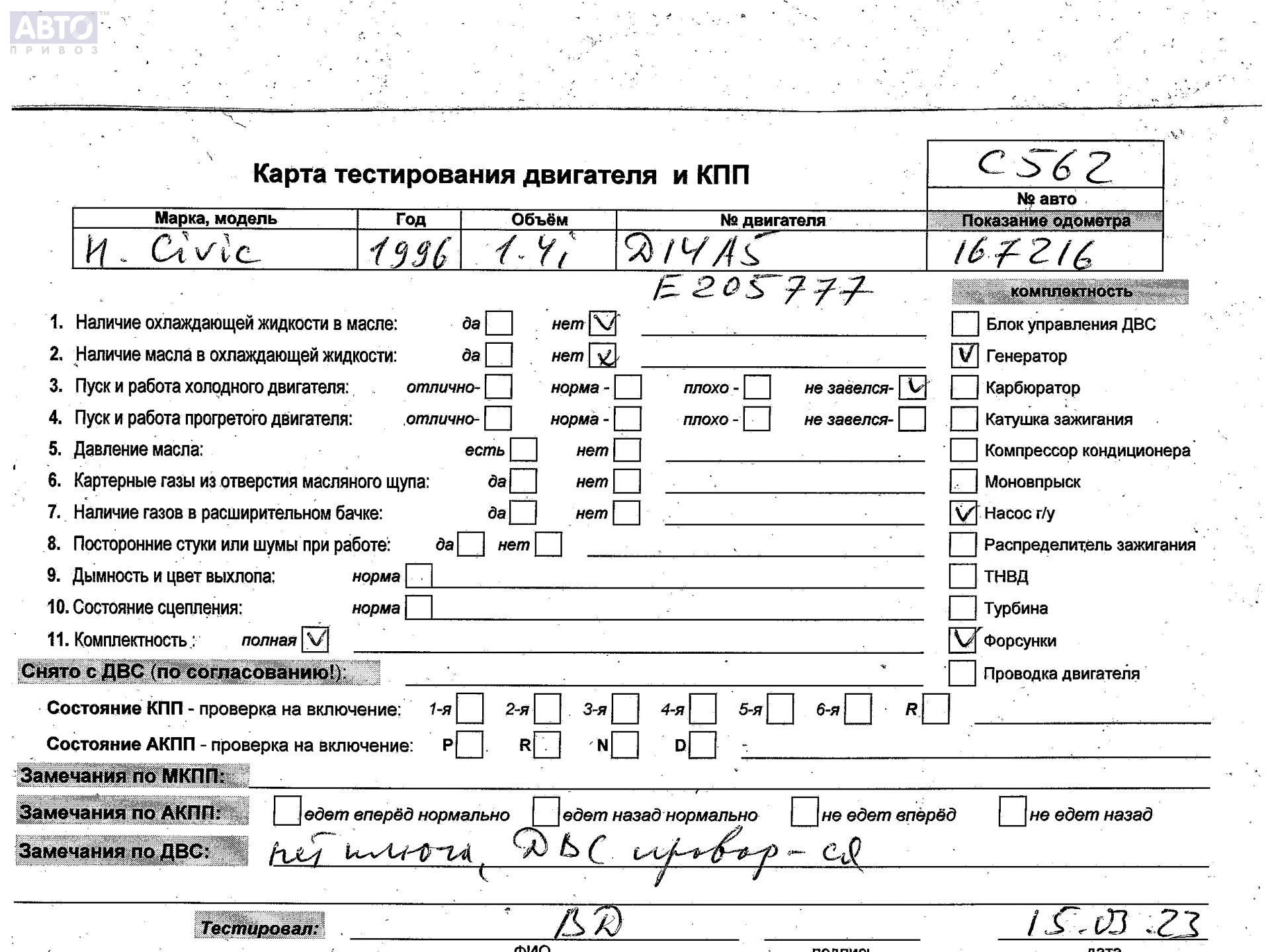 | Марка / Модель / Год: | Honda Civic (1995-2000) 1996 |