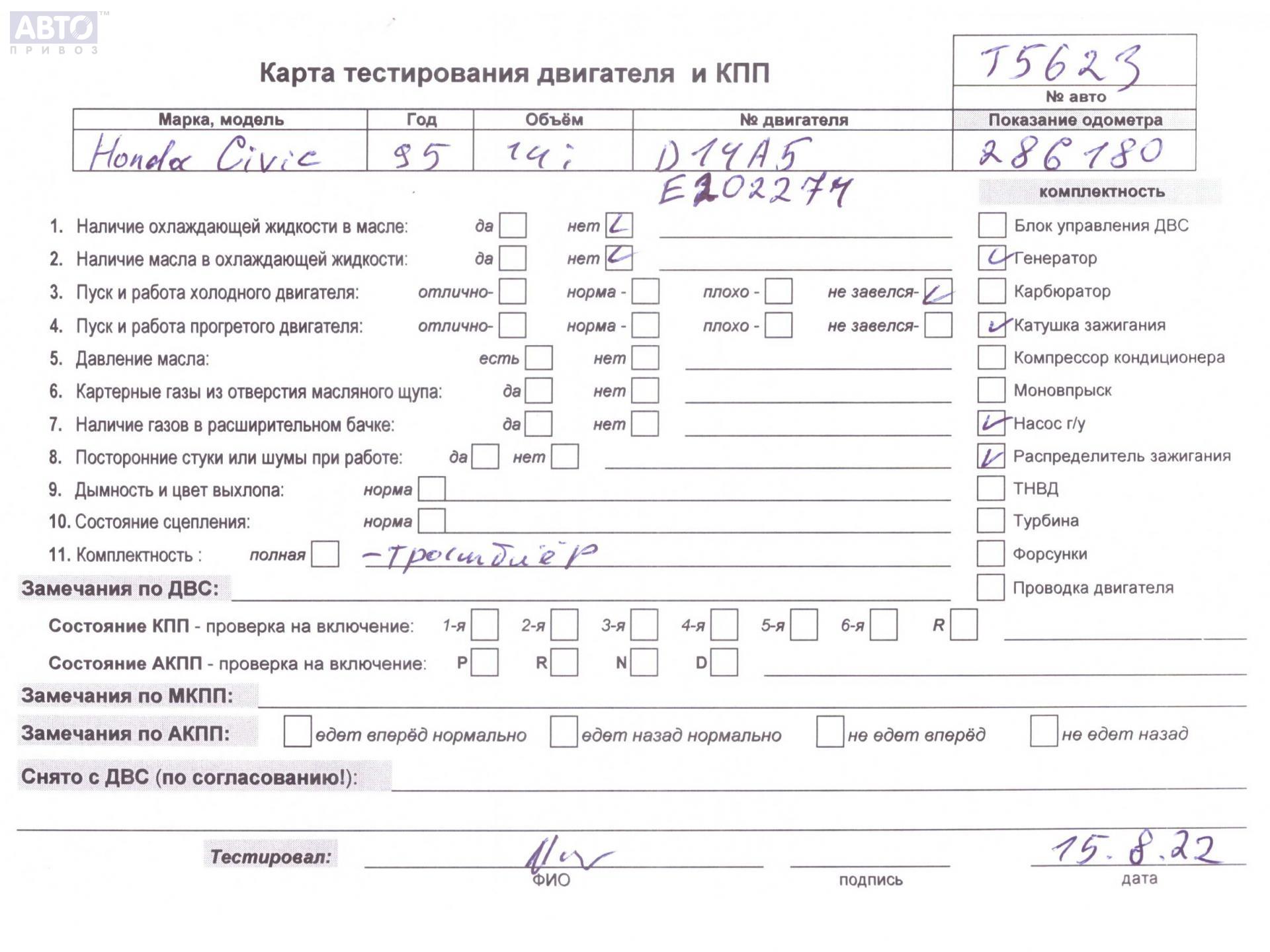| Марка / Модель / Год: | Honda Civic (1995-2000) 1995 |