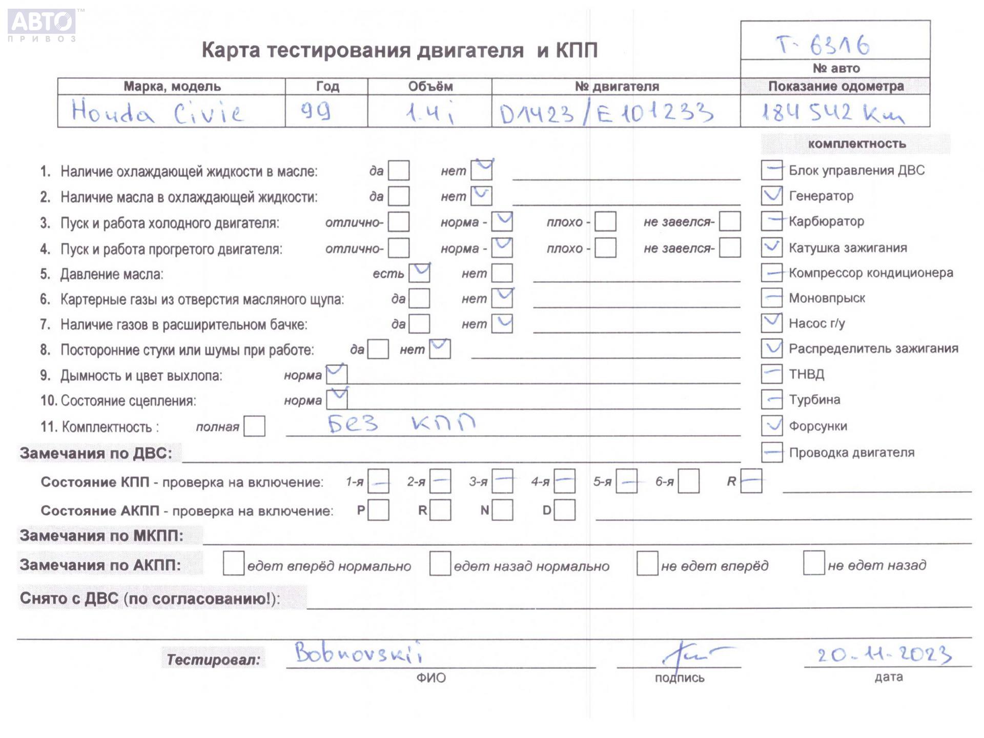 | Марка / Модель / Год: | Honda Civic (1995-2000) 1999 |