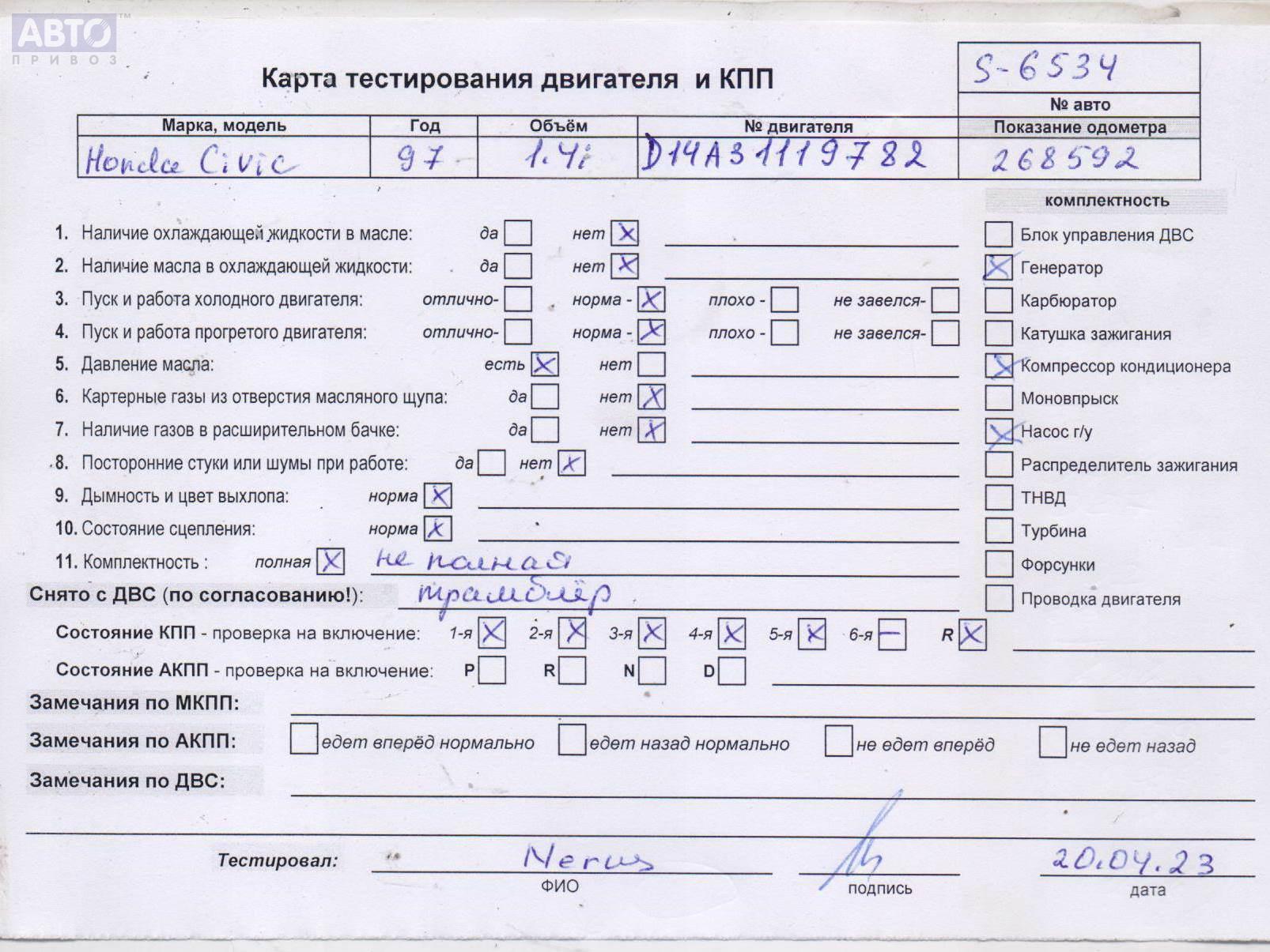 | Автомобиль / VIN: | S6534 JHMEJ93300S146683 |