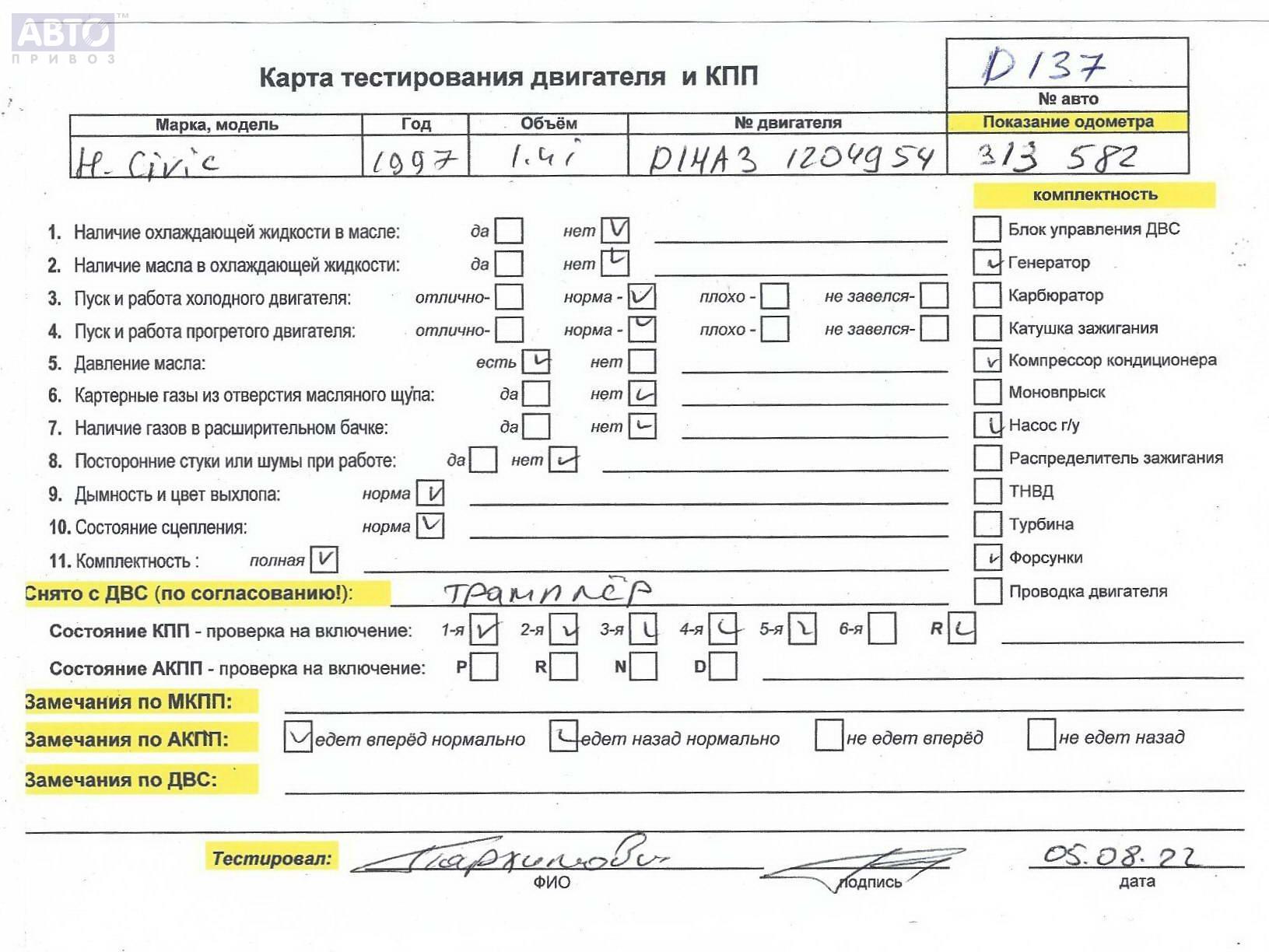 | Автомобиль / VIN: | D0137 JHMEJ9330WS015394 |