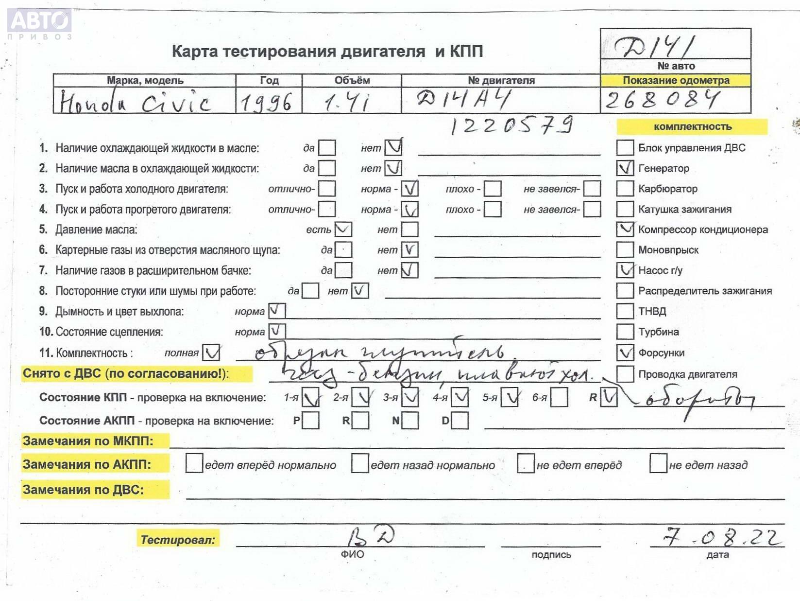 | Марка / Модель / Год: | Honda Civic (1995-2000) 1996 |