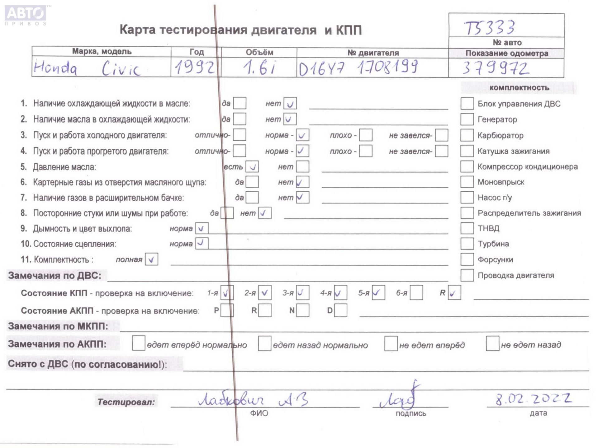 | Марка / Модель / Год: | Honda Civic (1995-2000) 1996 |