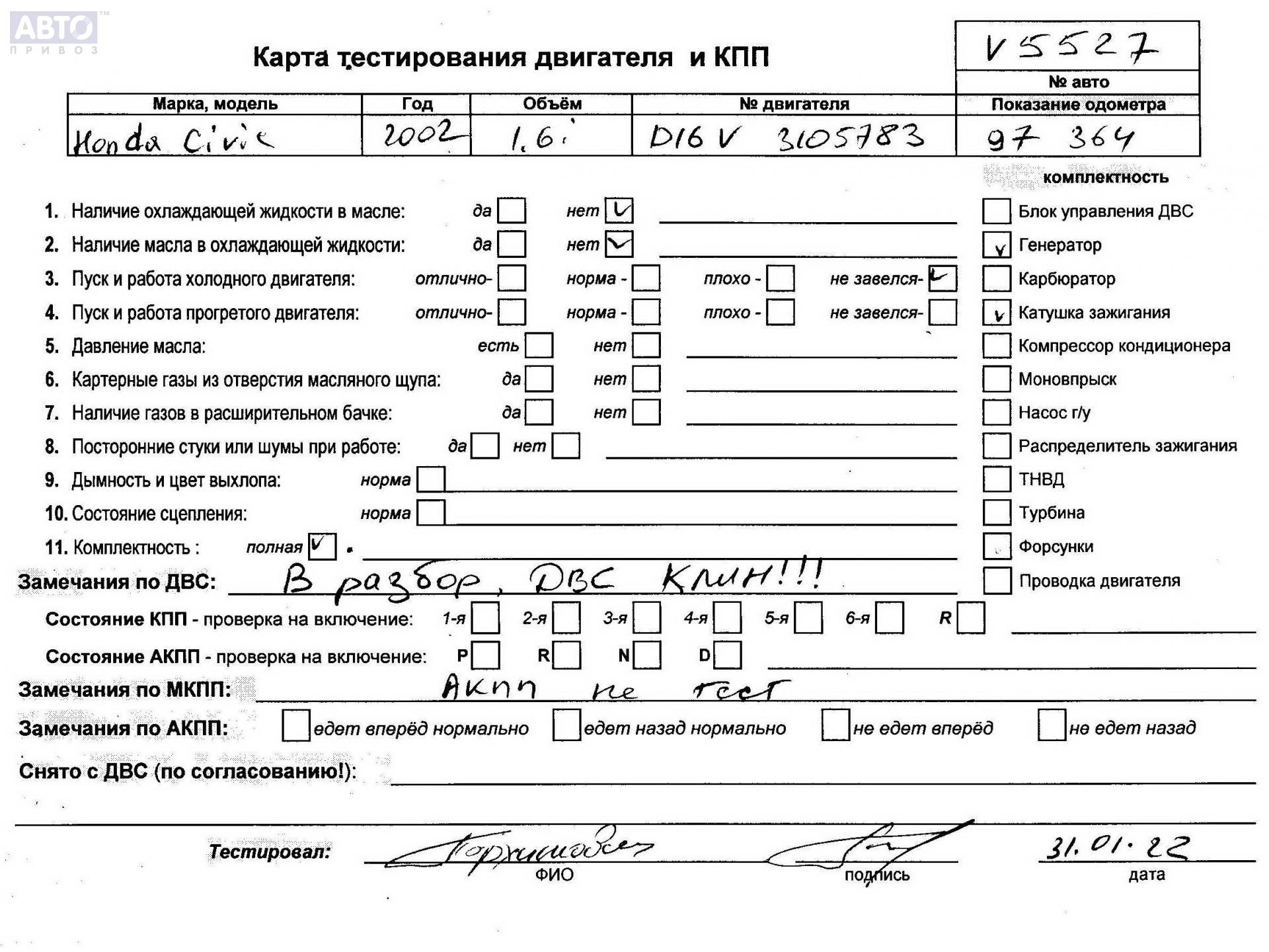 | Марка / Модель / Год: | Honda Civic (2001-2005) 2002 |