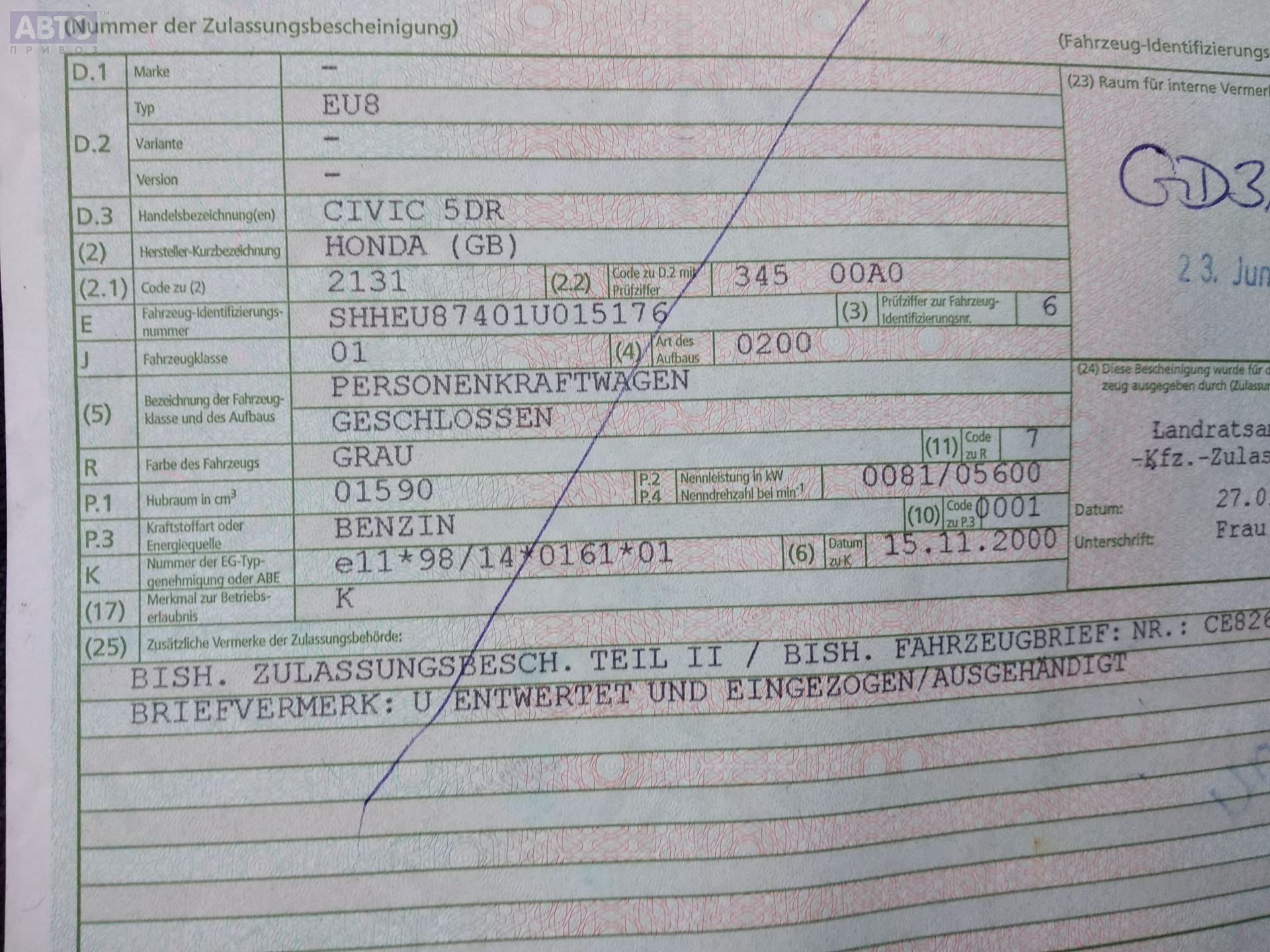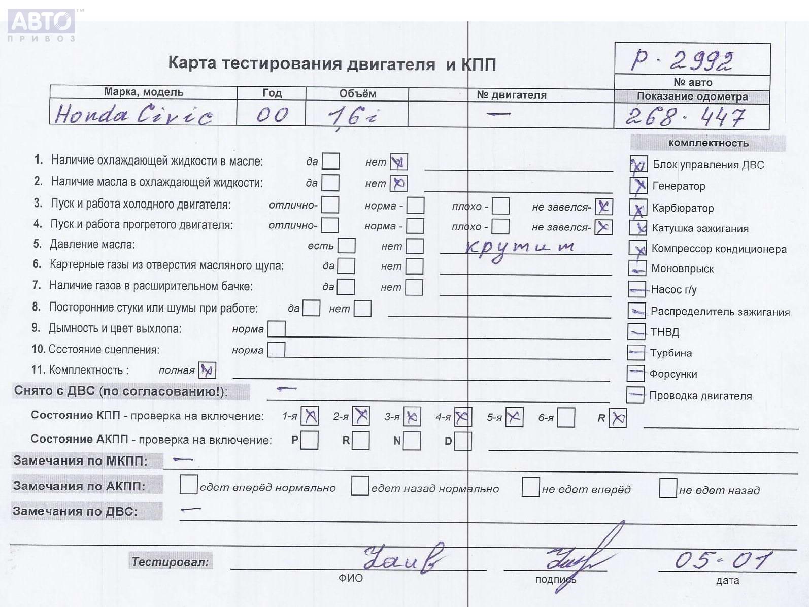 | Автомобиль / VIN: | P2992 SHHEU87401U015176 |