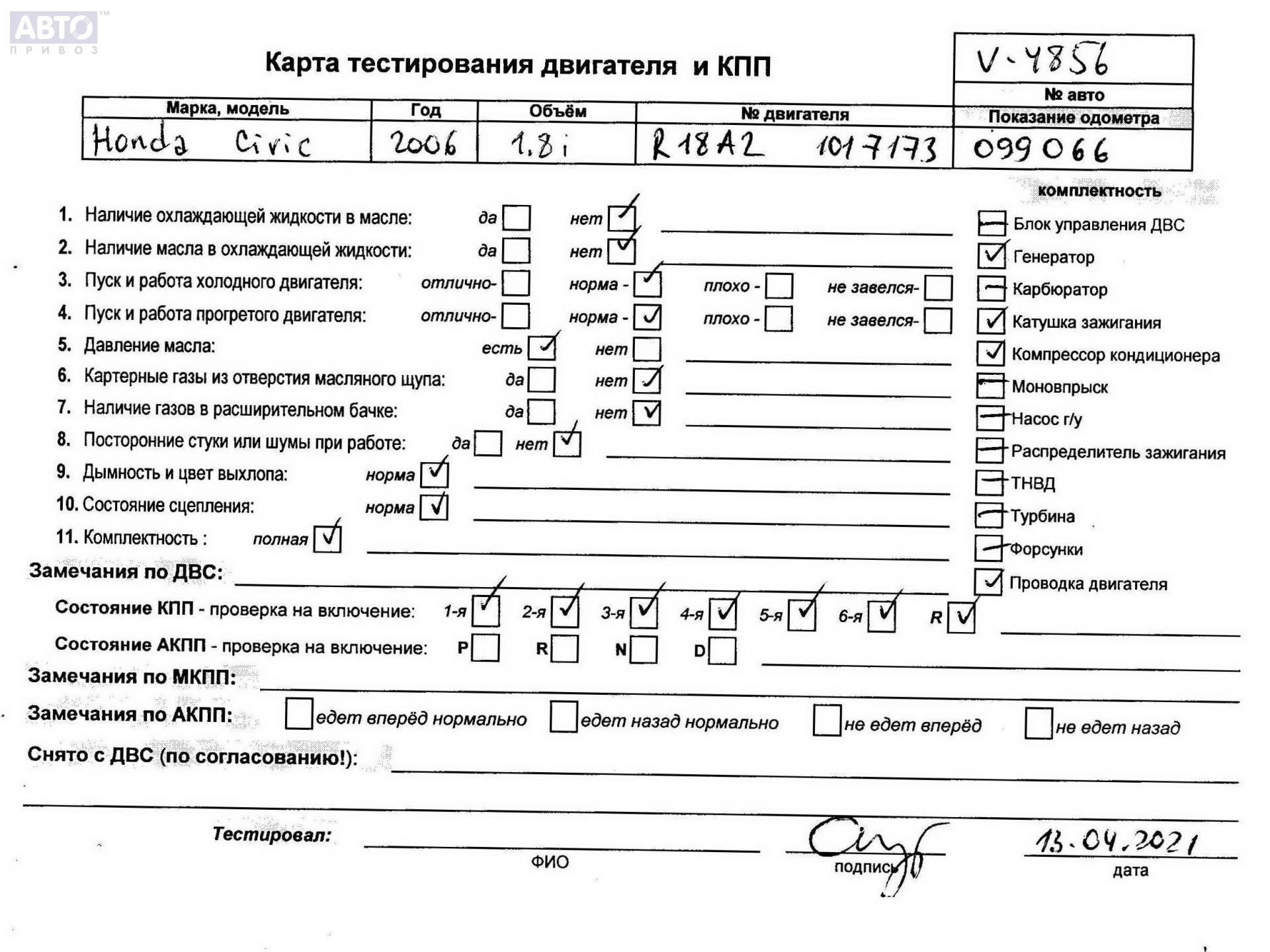 | Автомобиль / VIN: | V4856 SHHFK27406U017118 |