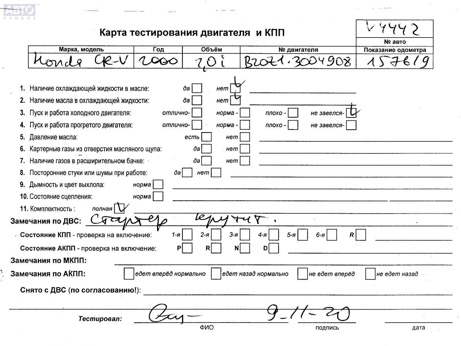 | Марка / Модель / Год: | Honda CR-V (1995-2001) 2000 |