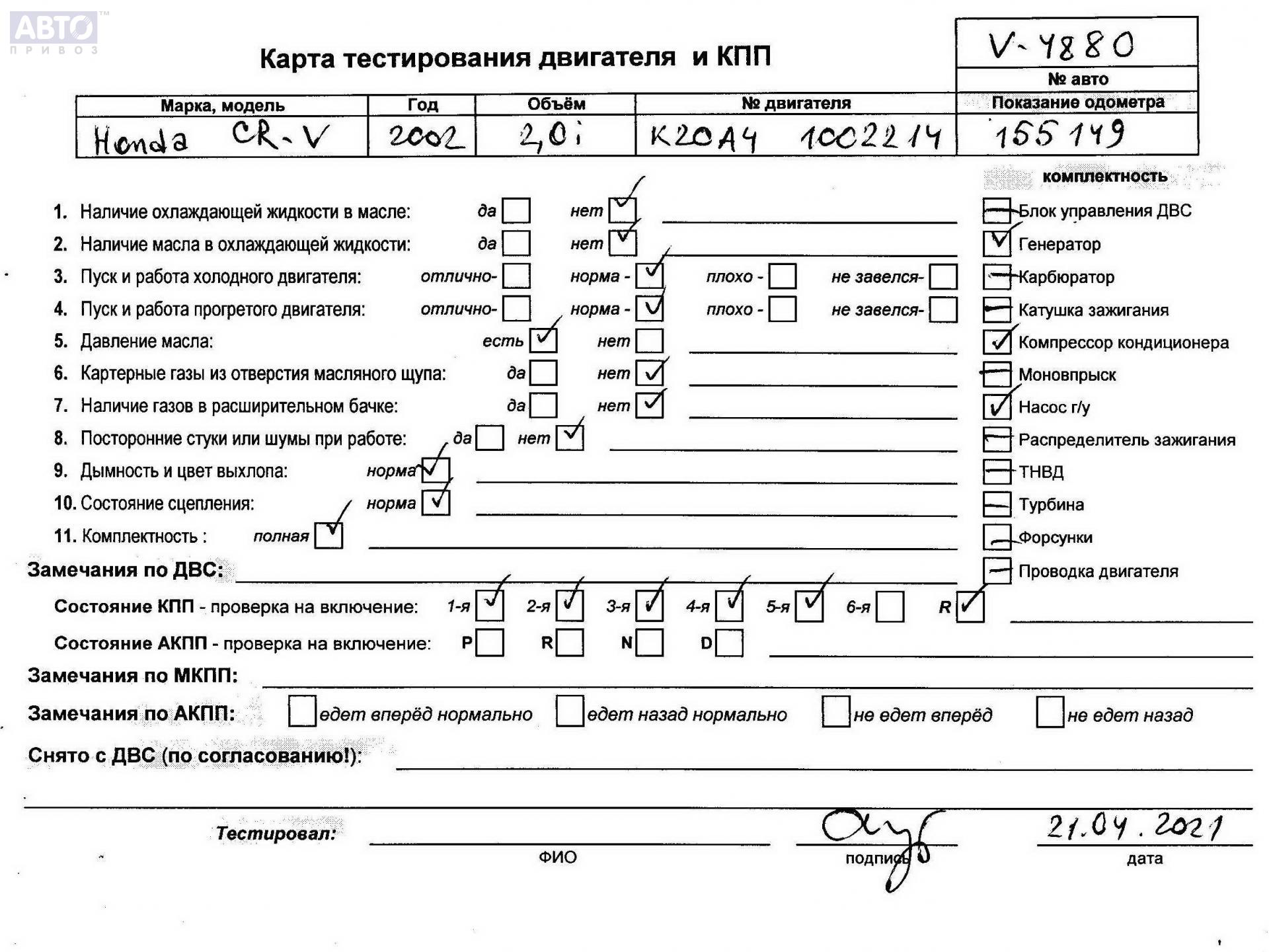 | Марка / Модель / Год: | Honda CR-V (2002-2006) 2002 |