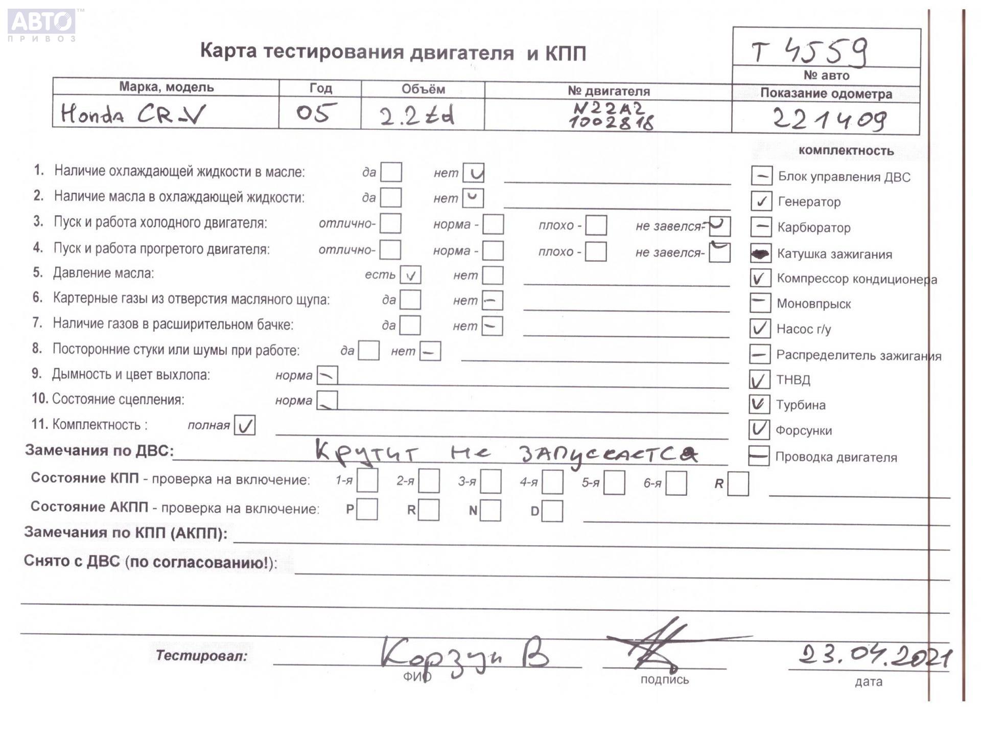 | Автомобиль / VIN: | T4559 SHSRD97805U002682 |