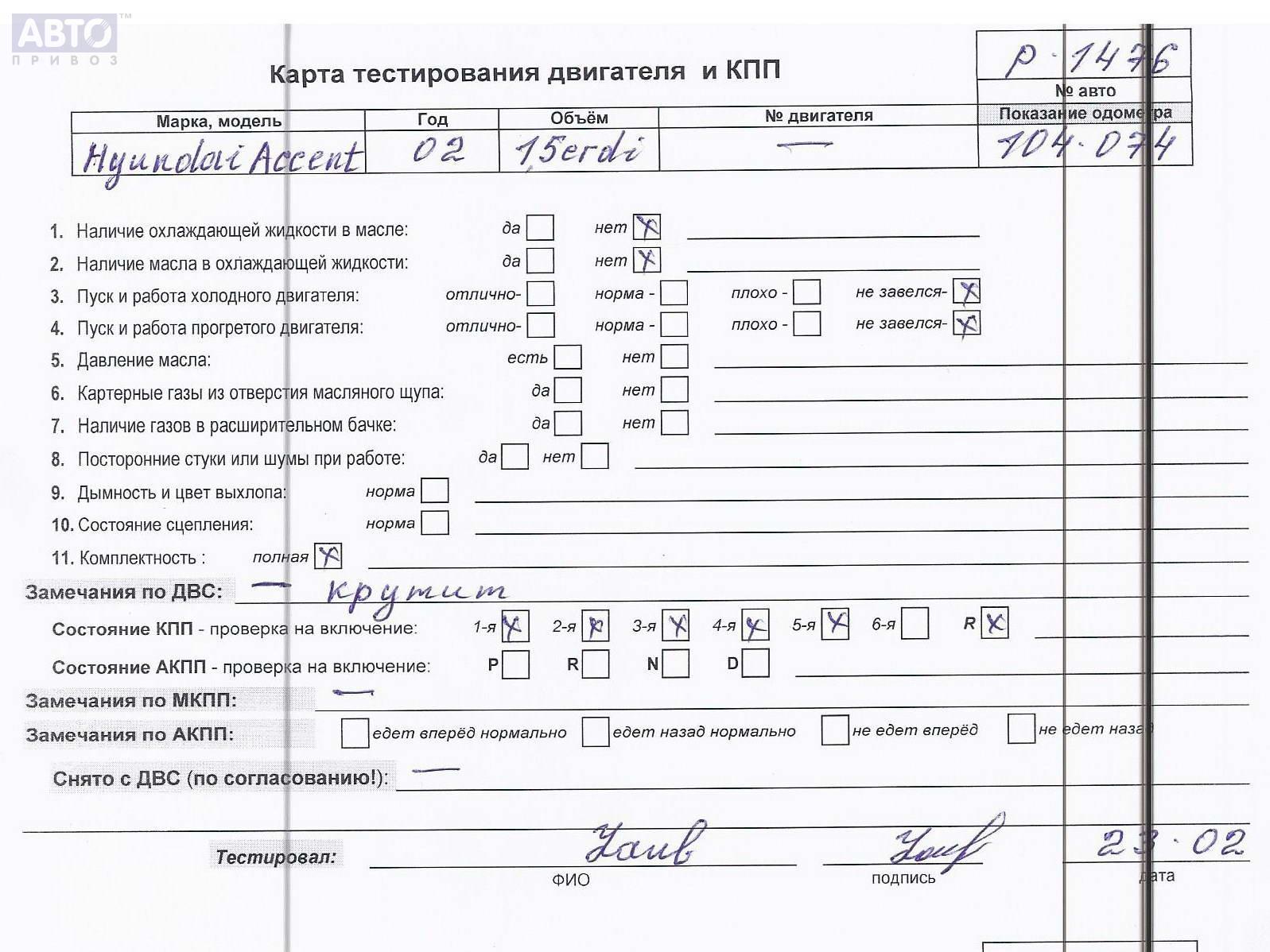 | Автомобиль / VIN: | P1476 KMHCH51VP2U157287 |