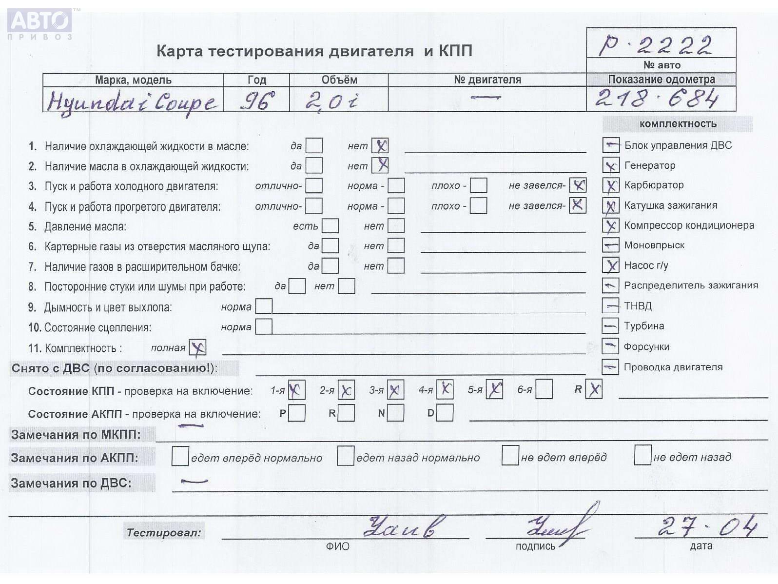 | Марка / Модель / Год: | Hyundai Coupe (1996-2001) 1996 |
