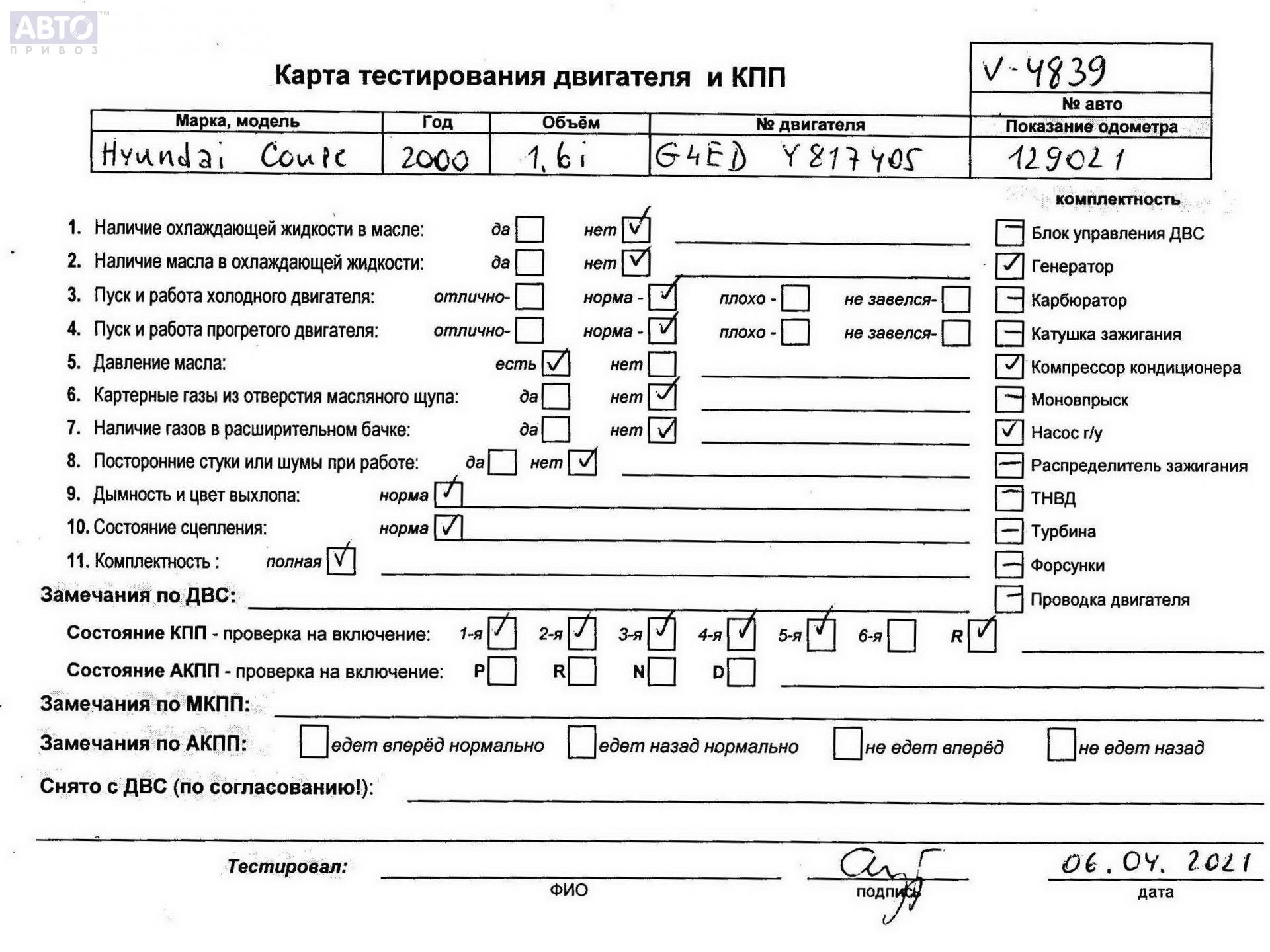 | Марка / Модель / Год: | Hyundai Coupe (1996-2001) 2000 |