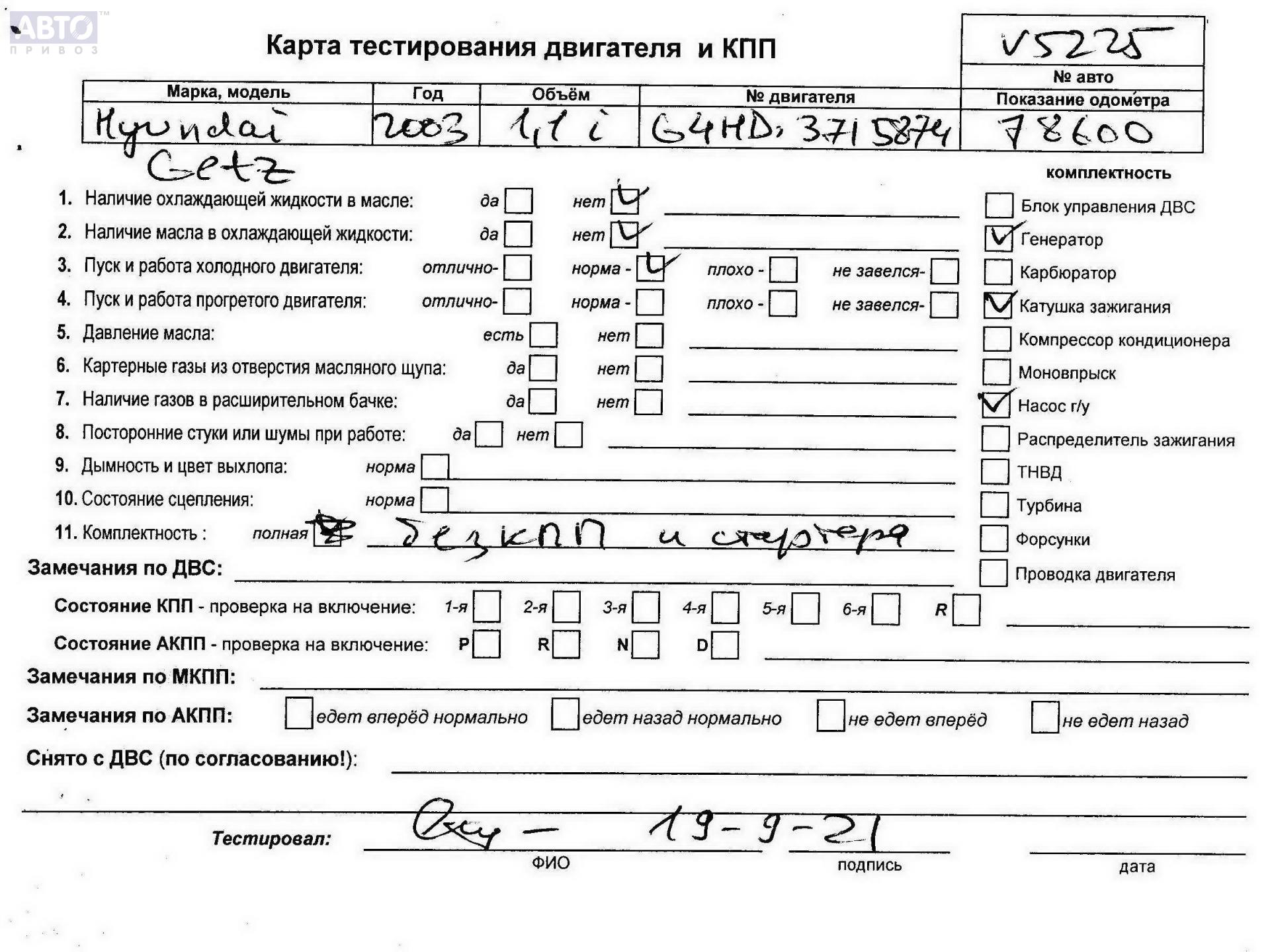 | Марка / Модель / Год: | Hyundai Getz 2003 |