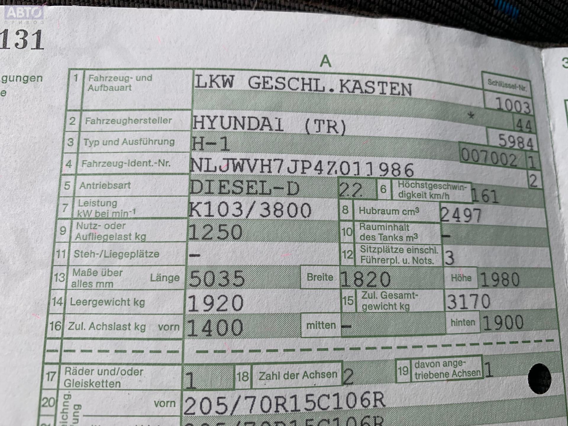 | Марка / Модель / Год: | Hyundai H1 / Starex 2003 |