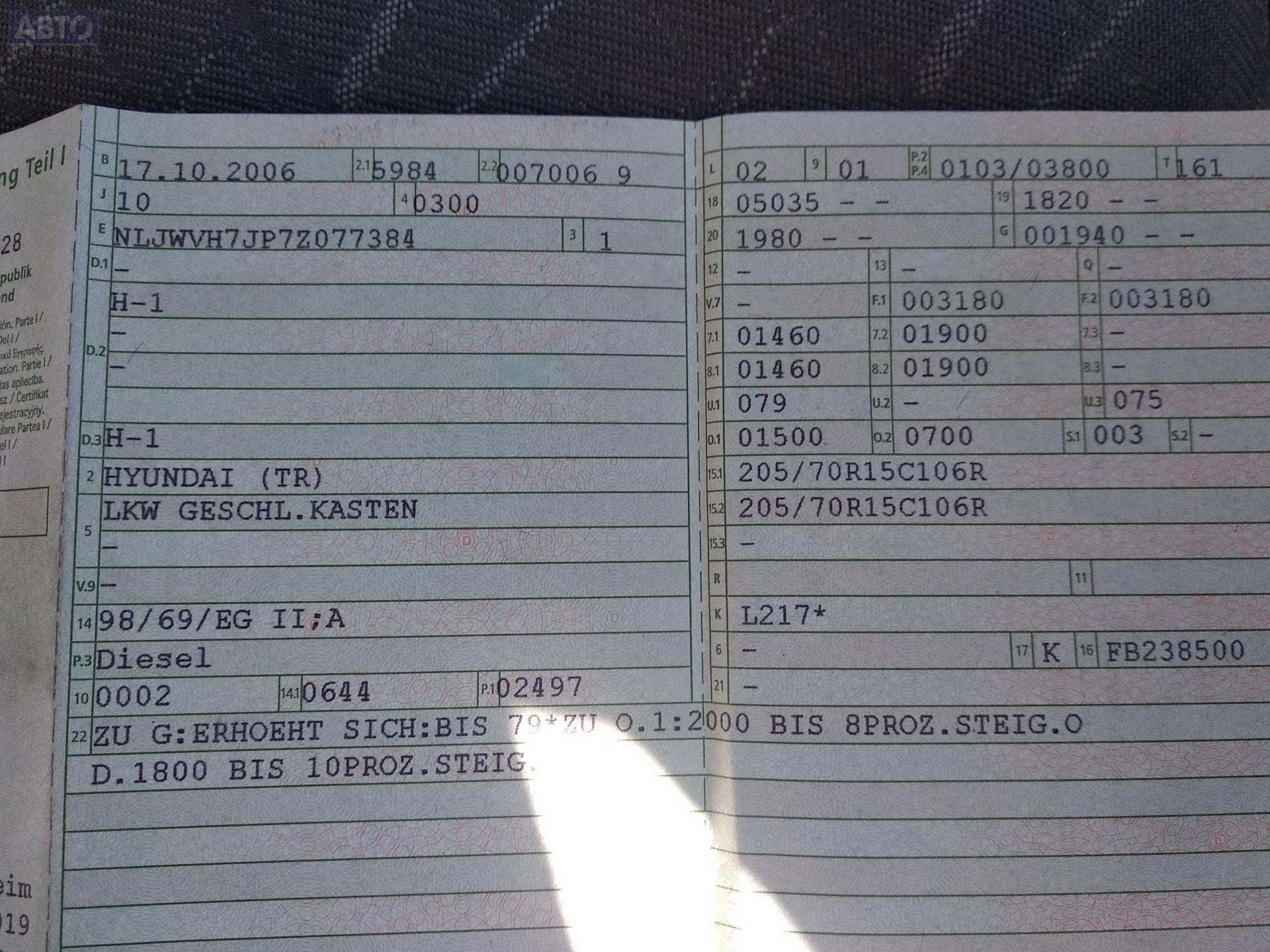 | Марка / Модель / Год: | Hyundai H1 / Starex 2006 |