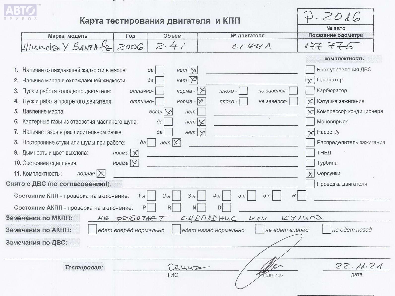 | Марка / Модель / Год: | Hyundai Santa Fe (2001-2006) 2005 |