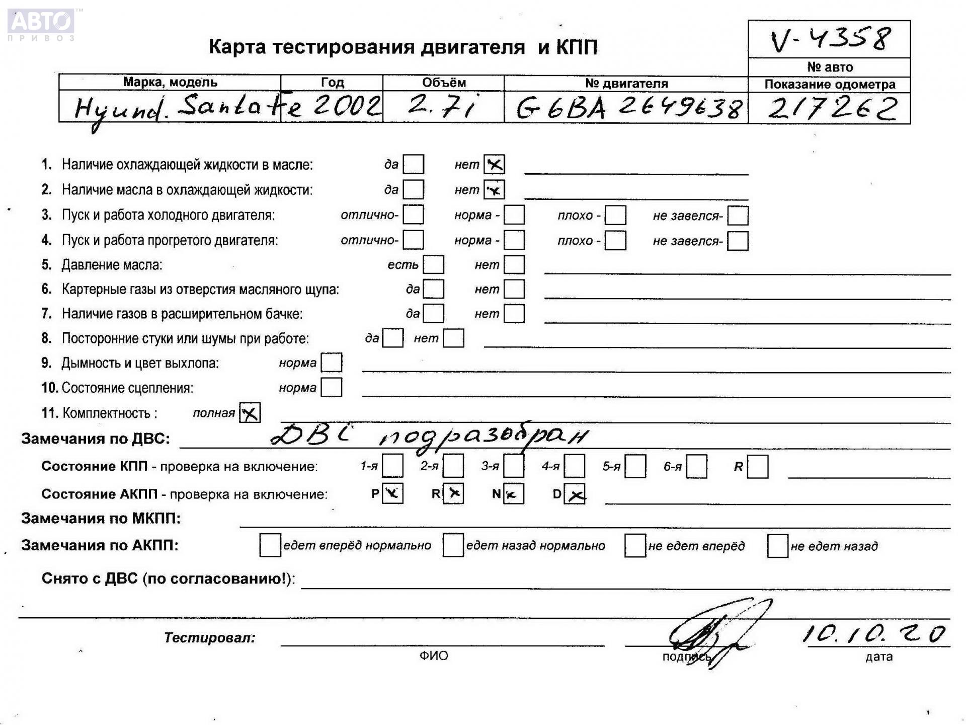 | Марка / Модель / Год: | Hyundai Santa Fe (2001-2006) 2002 |