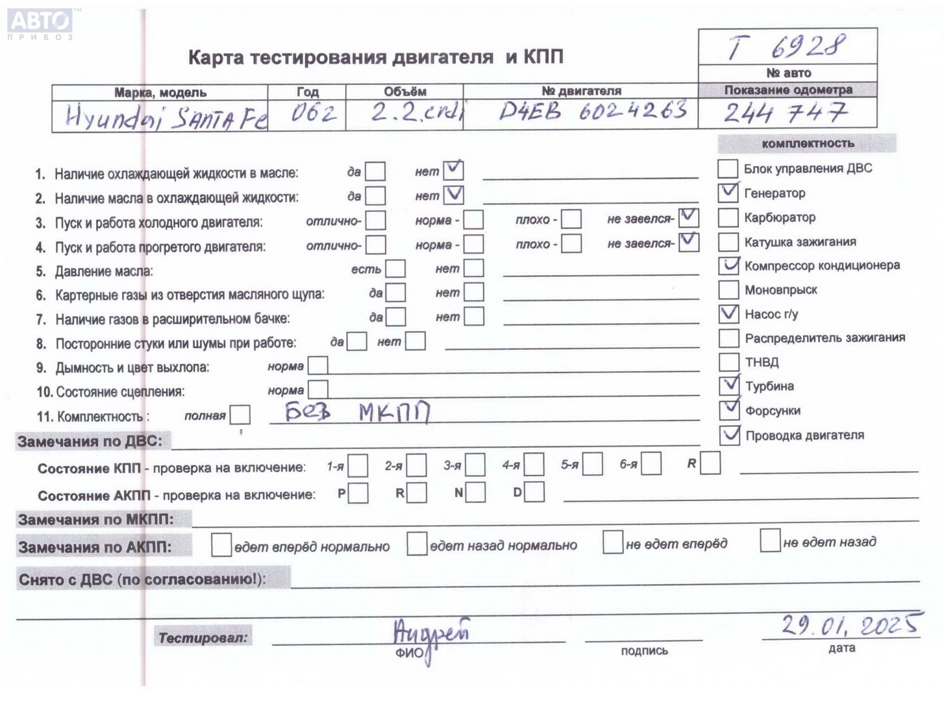 | Марка / Модель / Год: | Hyundai Santa Fe (2006-2012) 2007 |