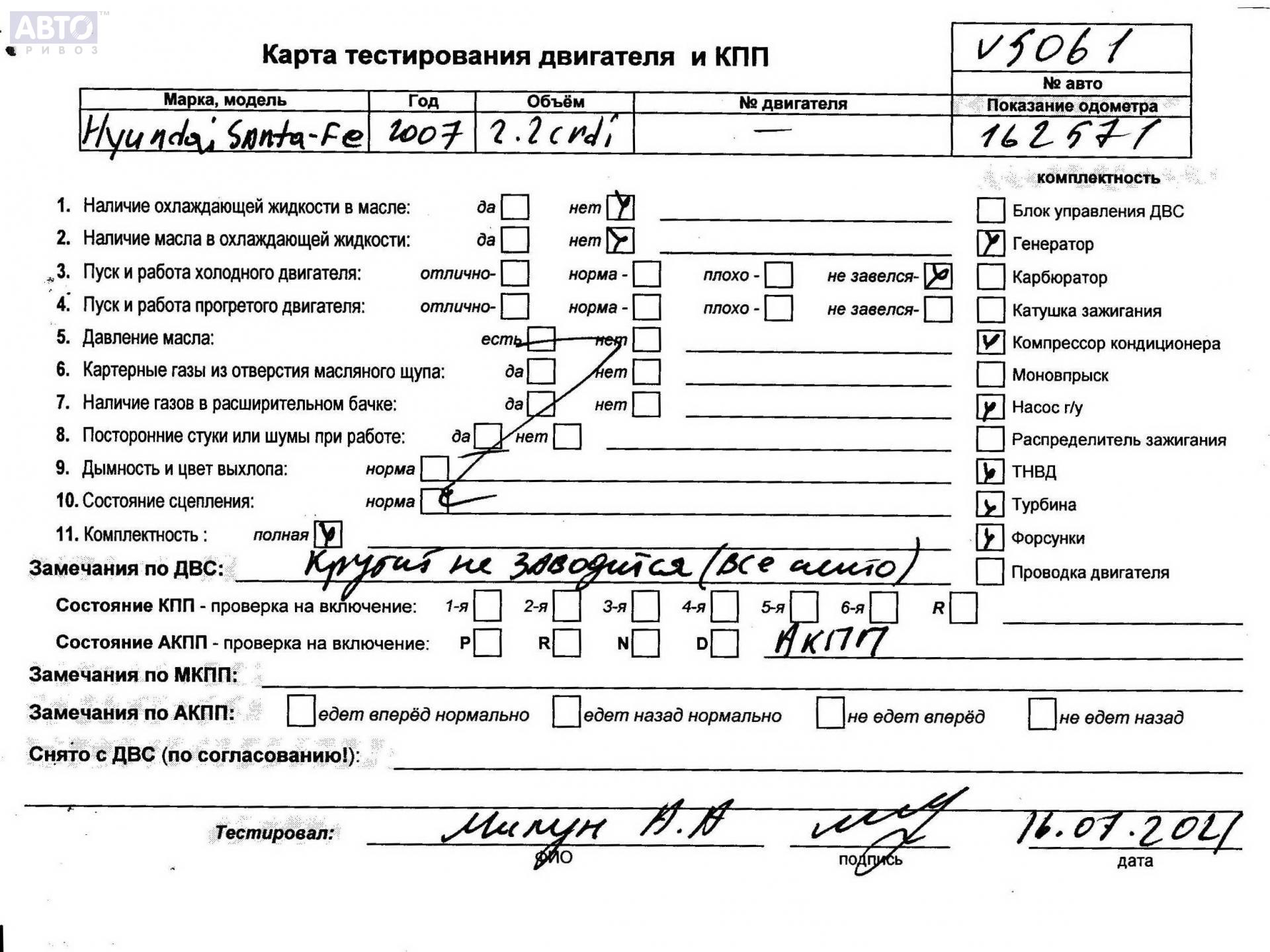 | Марка / Модель / Год: | Hyundai Santa Fe (2006-2012) 2007 |