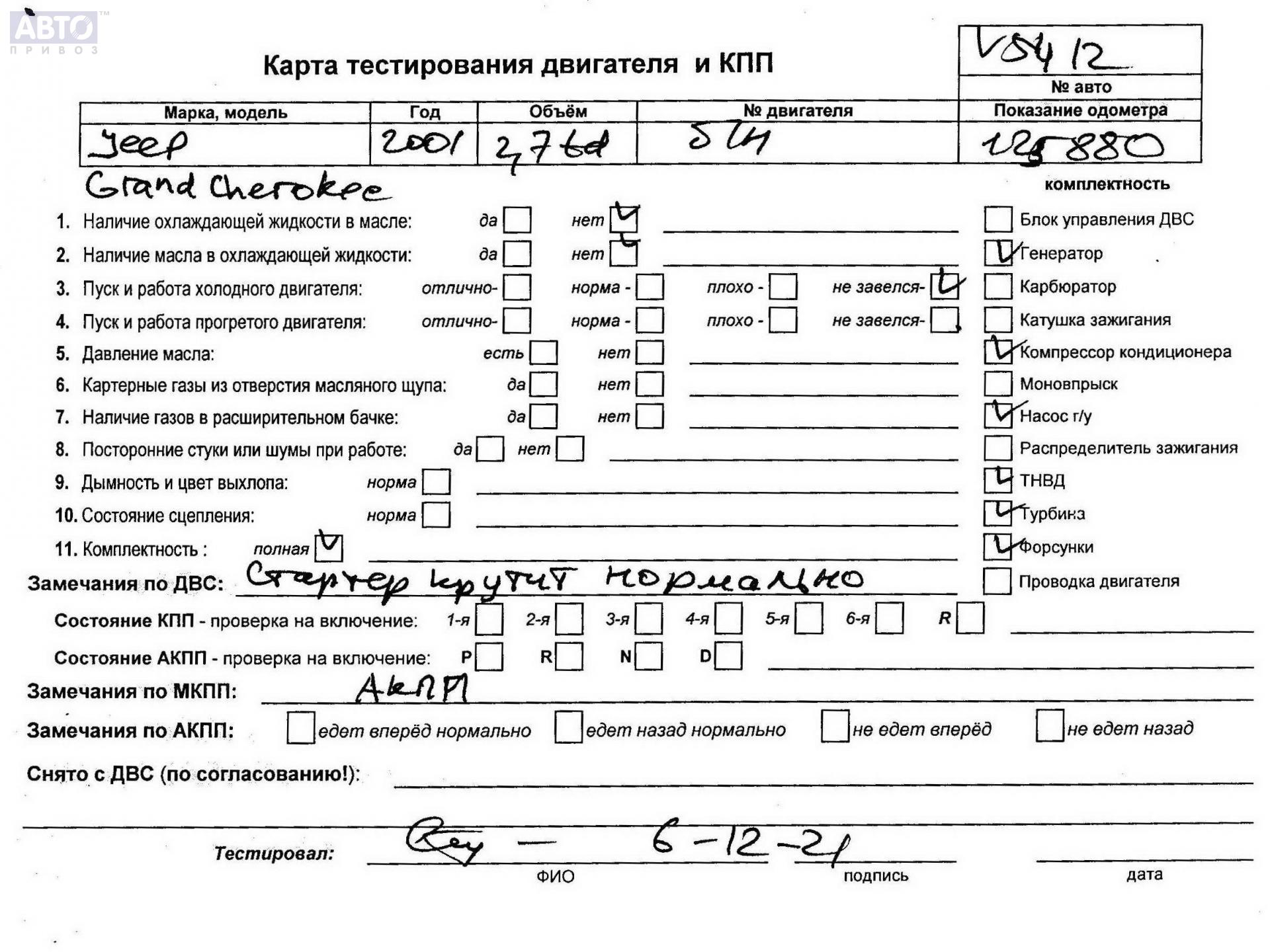 | Марка / Модель / Год: | Jeep Grand Cherokee (1999-2005) 2001 |