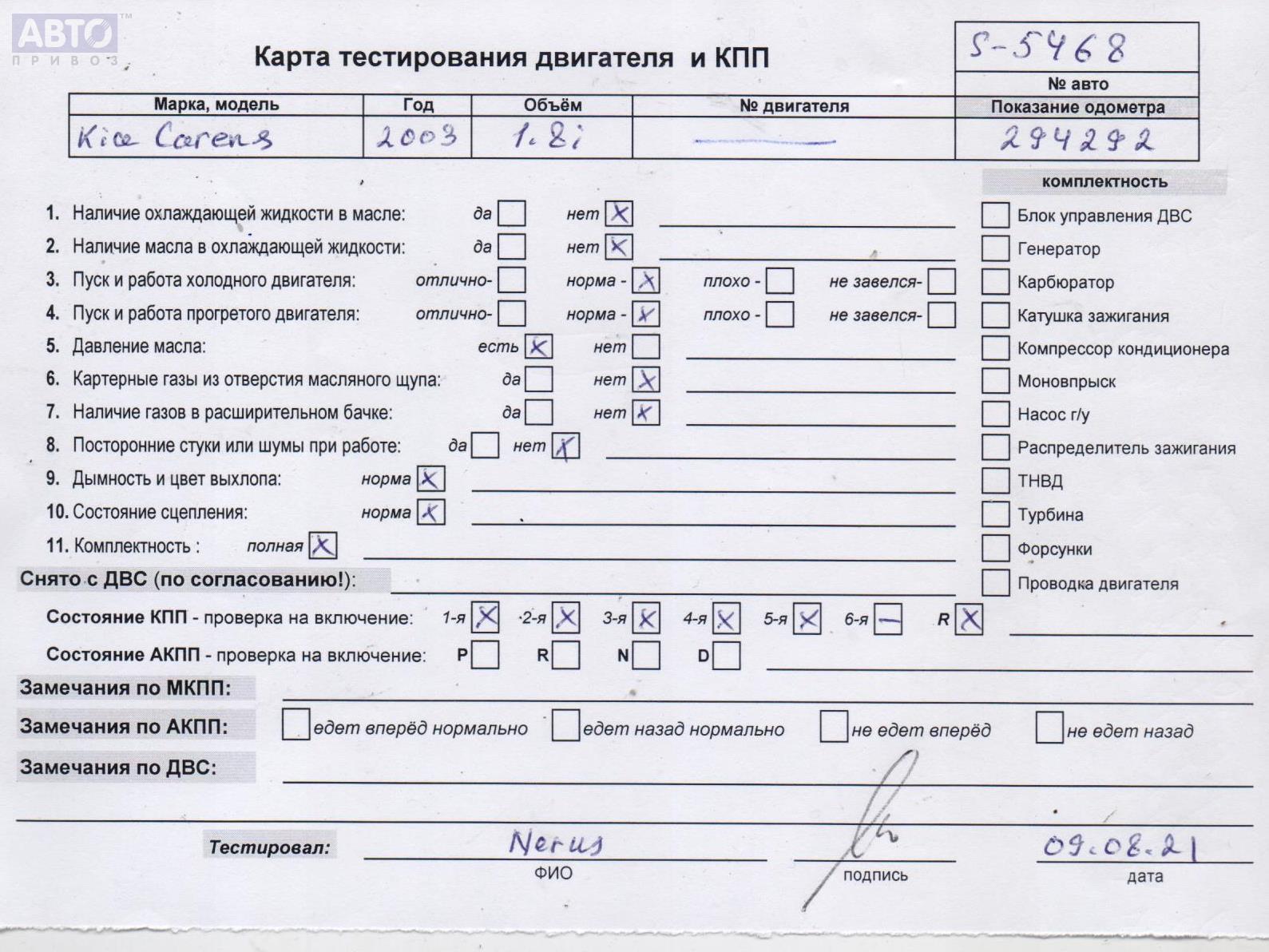 | Марка / Модель / Год: | Kia Carens (1999-2006, RS/FJ) 2003 |
