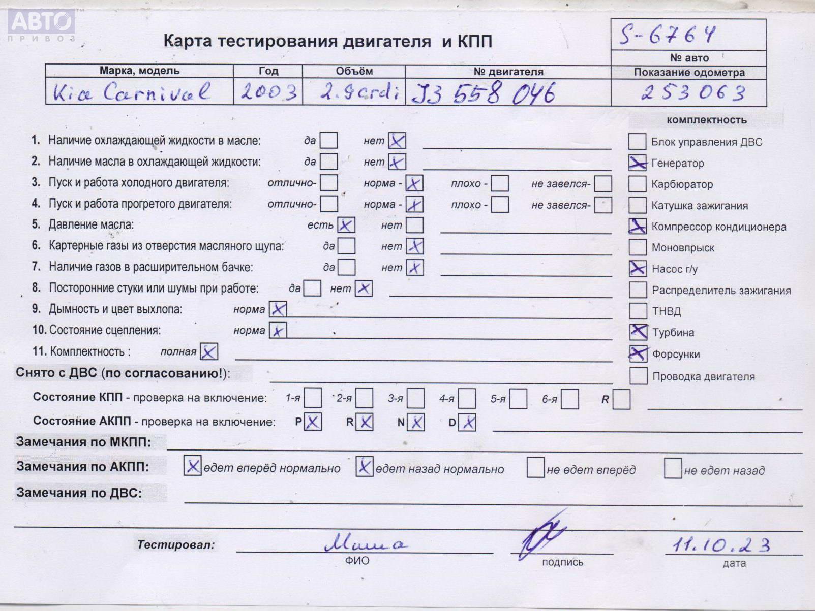 | Марка / Модель / Год: | Kia Carnival 2003 |