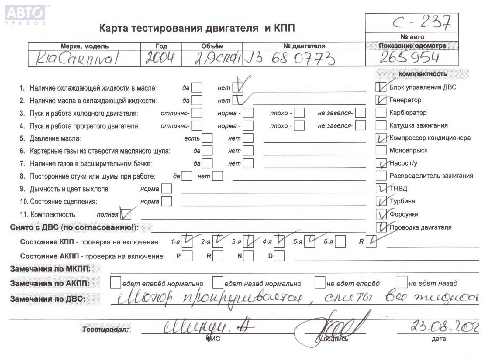 | Марка / Модель / Год: | Kia Carnival 2004 |