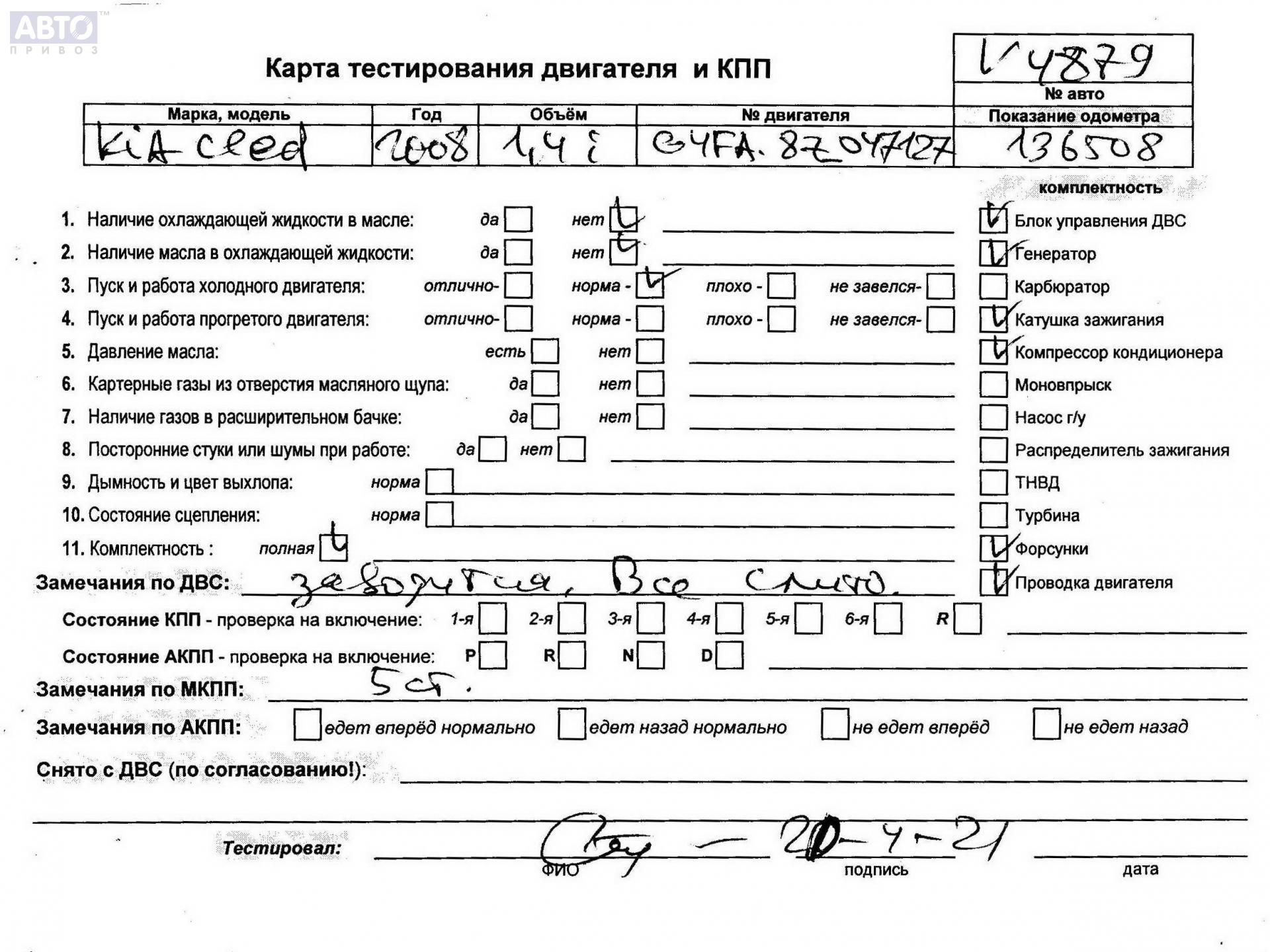 | Марка / Модель / Год: | Kia Ceed 2008 |