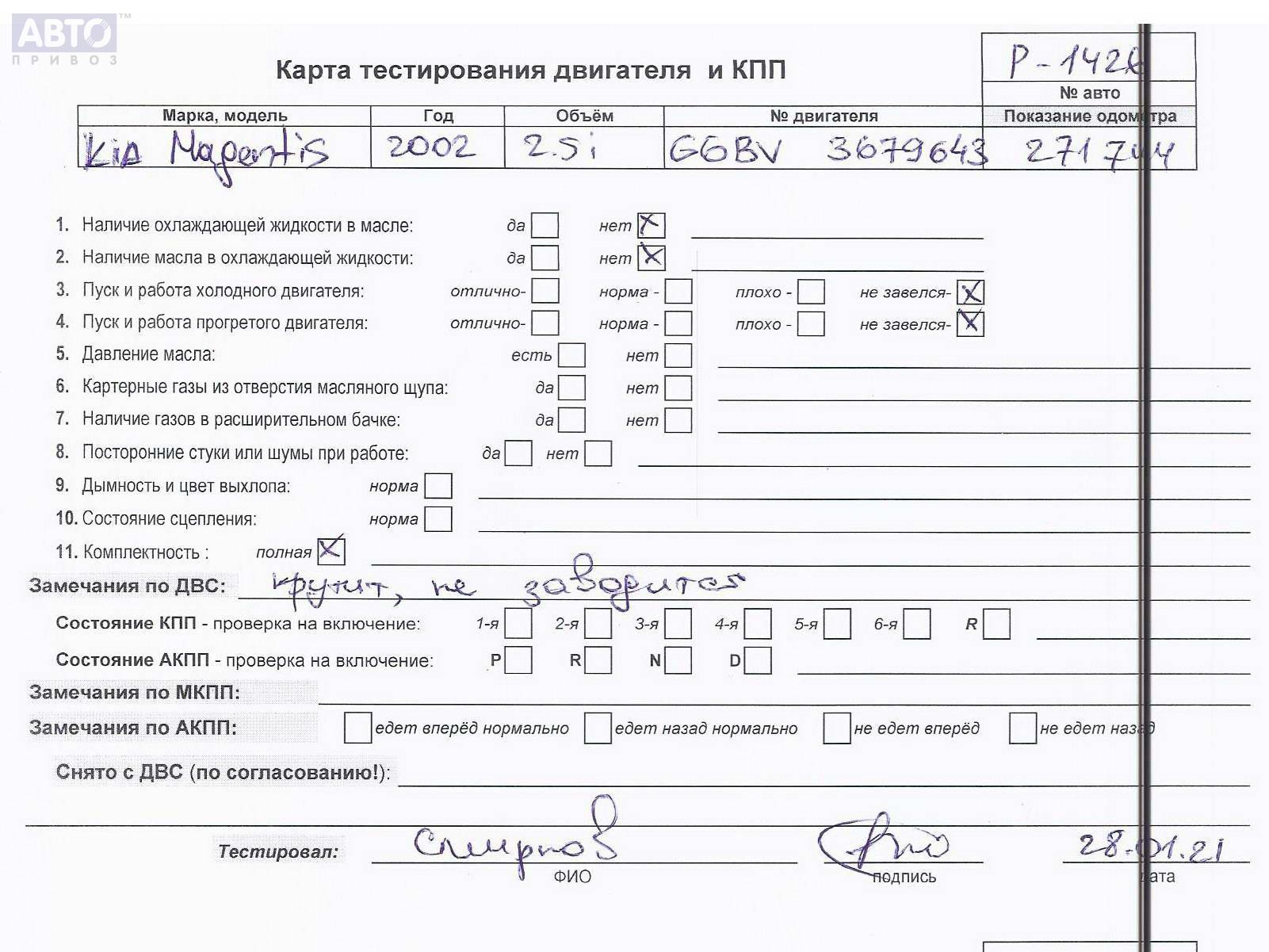 | Марка / Модель / Год: | Kia Magentis 2002 |