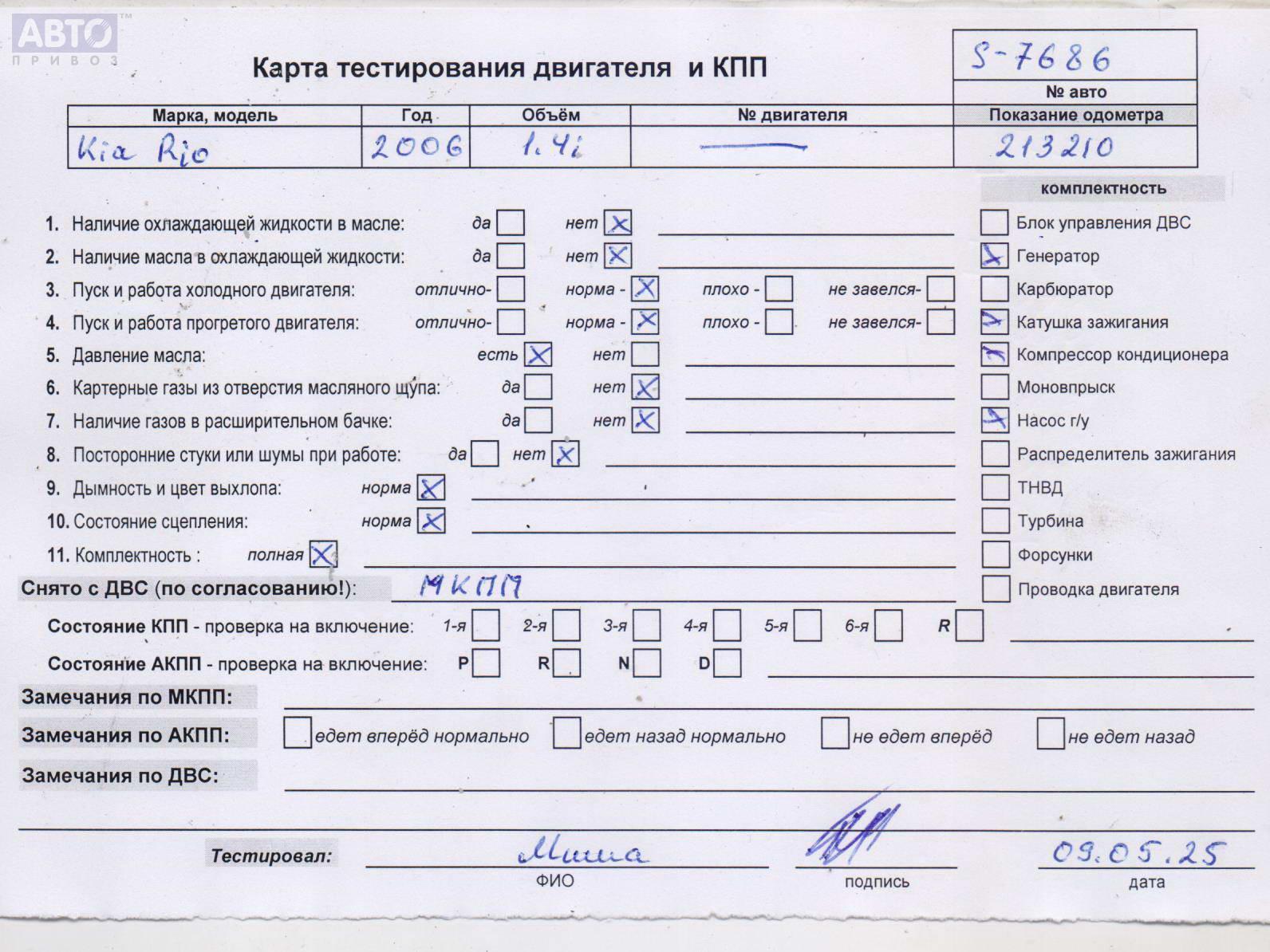 | Марка / Модель / Год: | Kia Rio (2005-2011) 2006 |