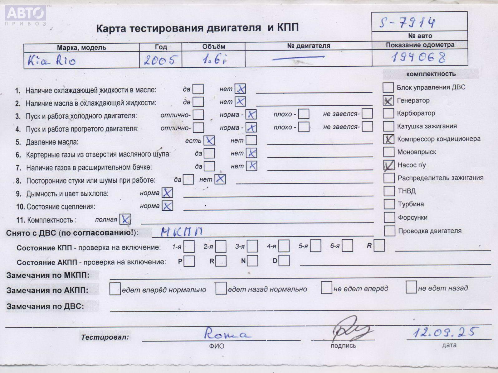 | Марка / Модель / Год: | Kia Rio (2005-2011) 2005 |