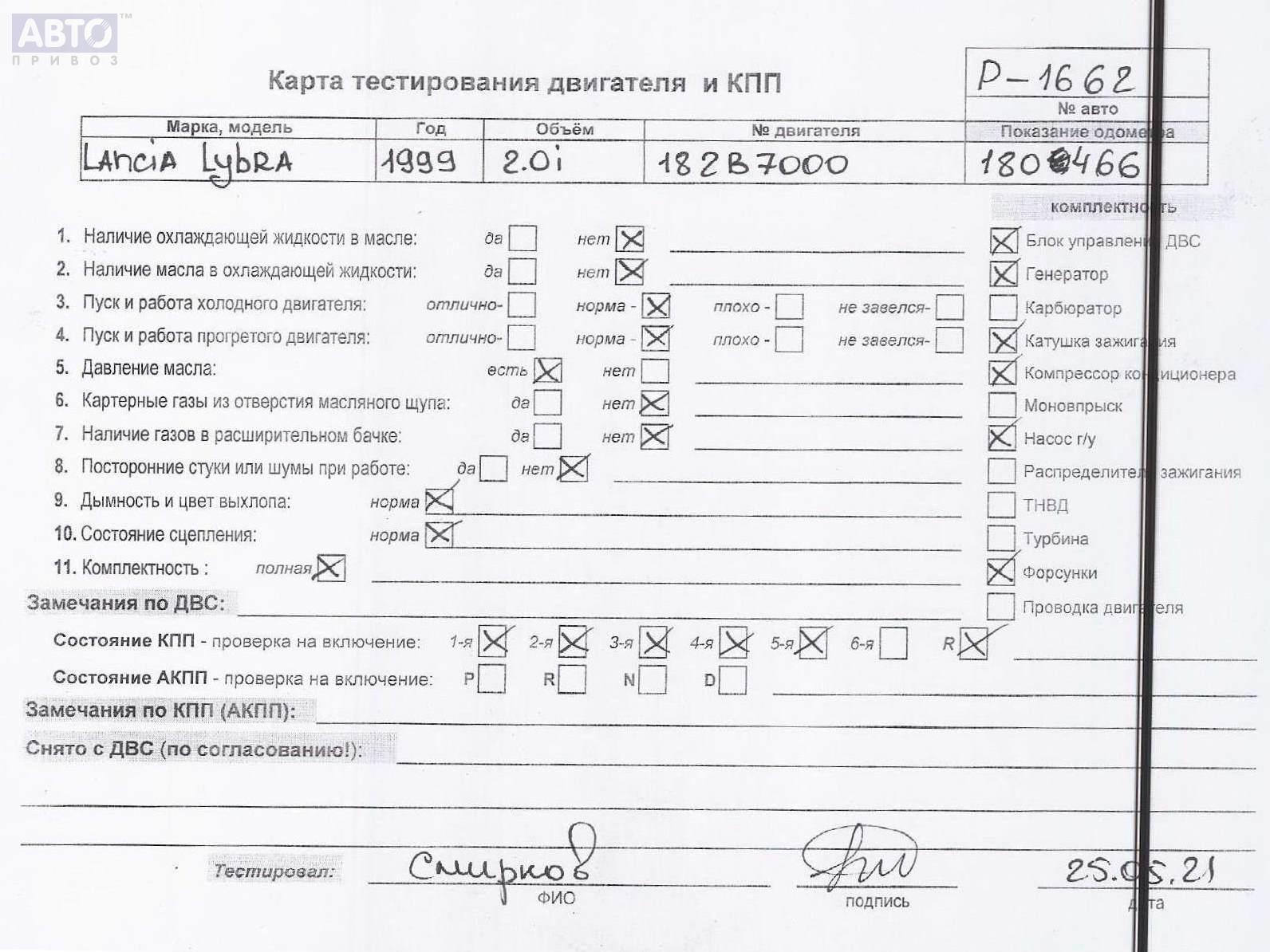 | Марка / Модель / Год: | Lancia Lybra 1999 |