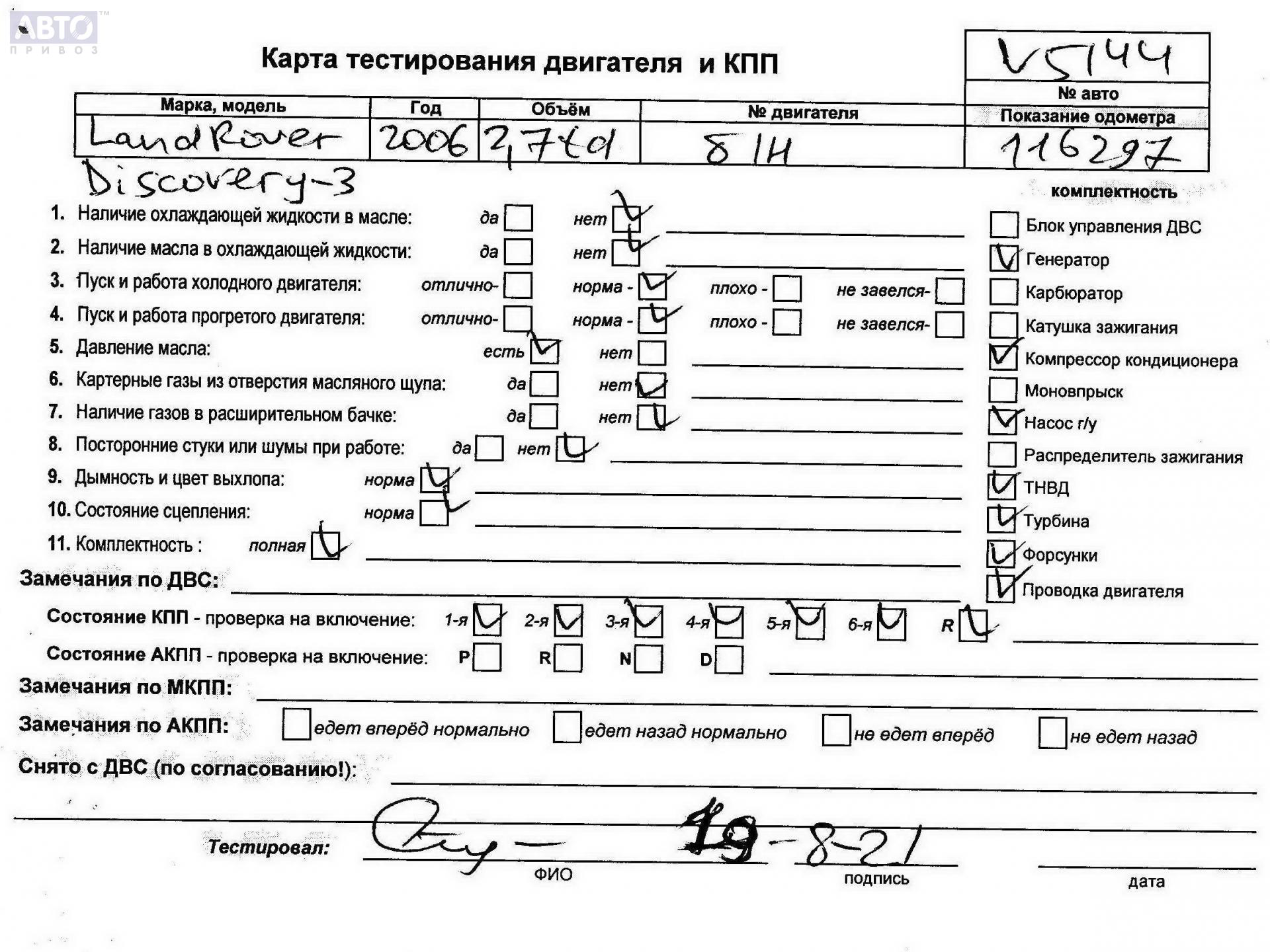 | Марка / Модель / Год: | Land Rover Discovery 2006 |