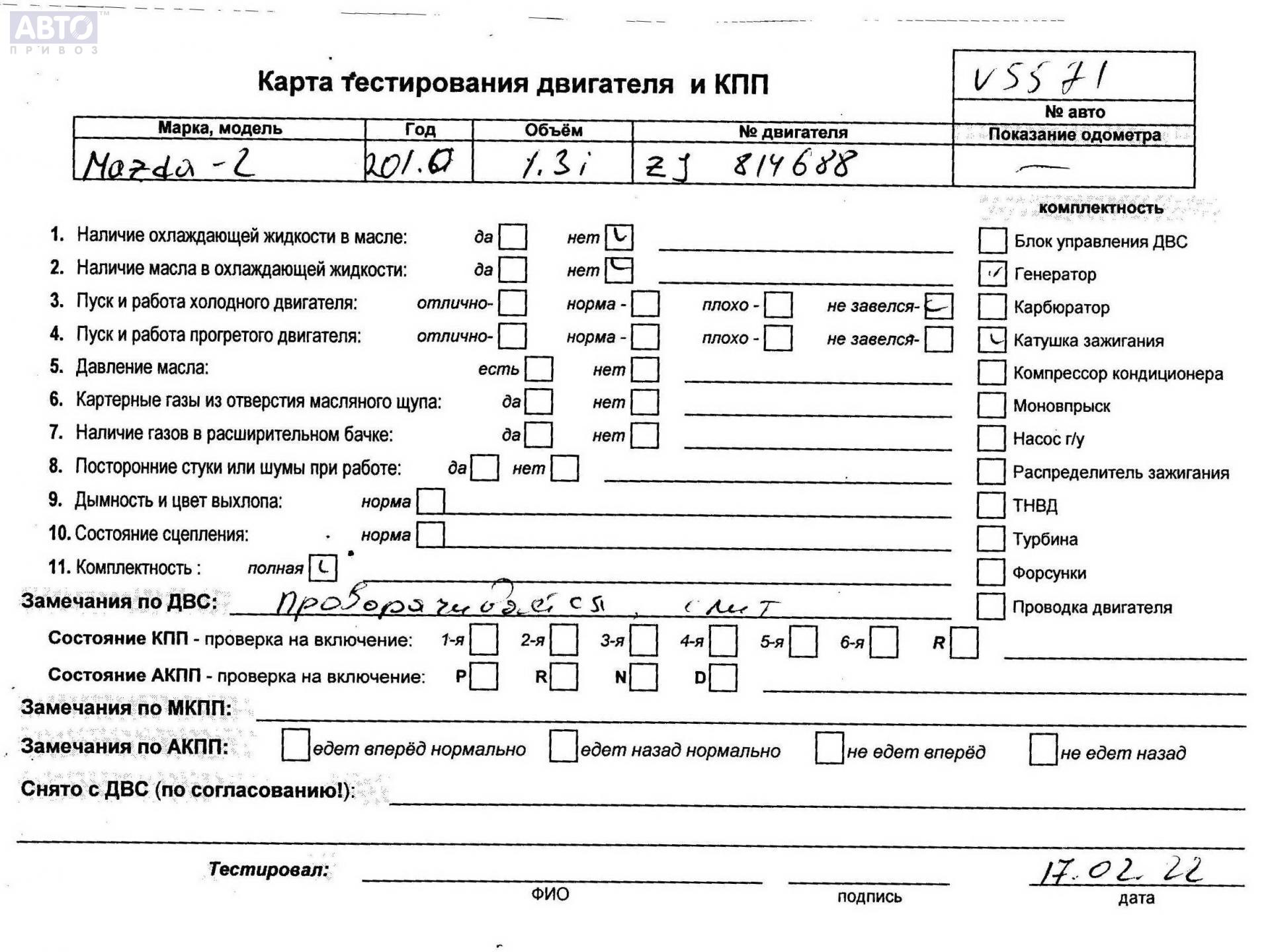| Марка / Модель / Год: | Mazda 2 2010 |