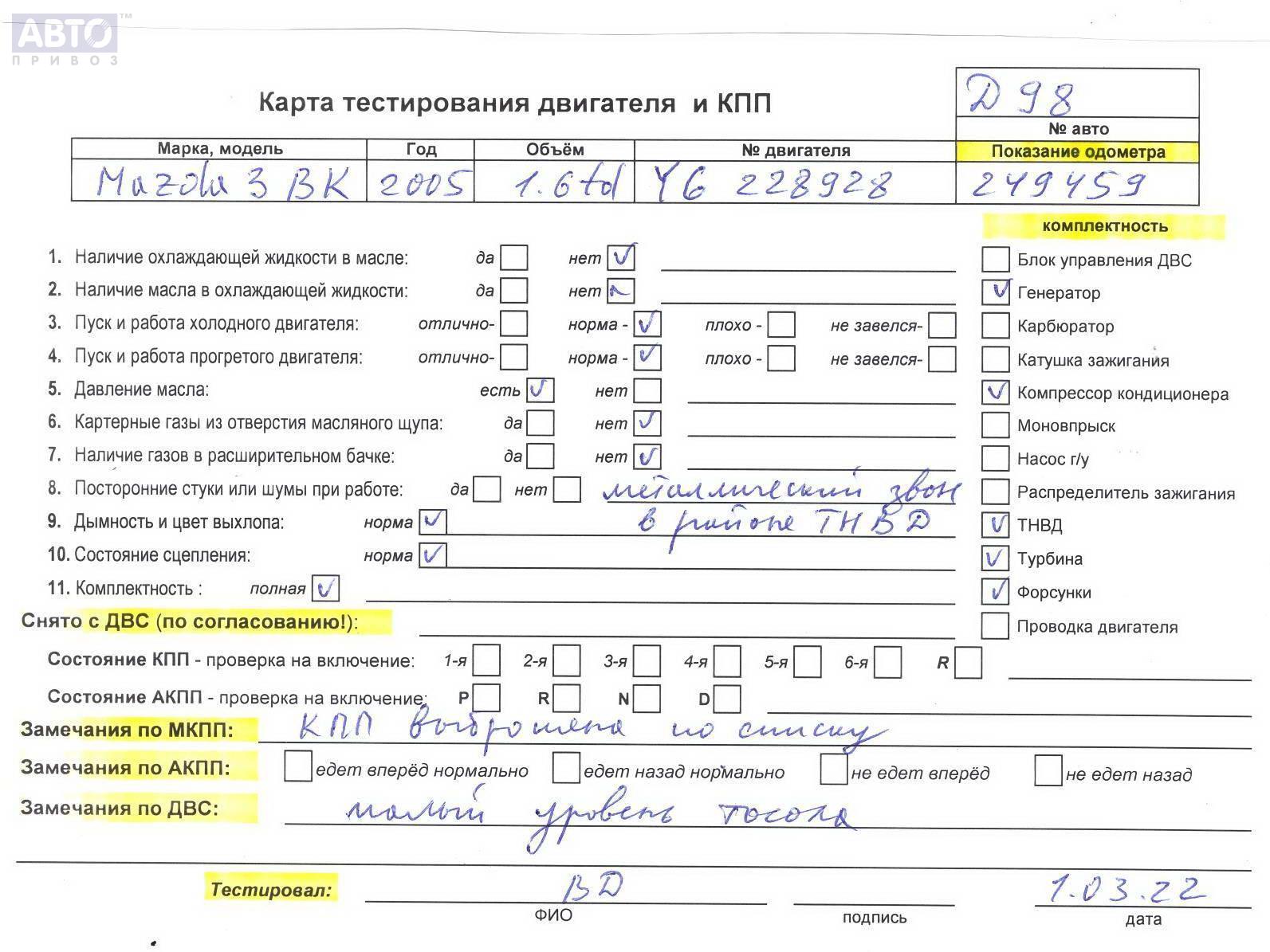 | Автомобиль / VIN: | D0098 JMZBK123261260389 |