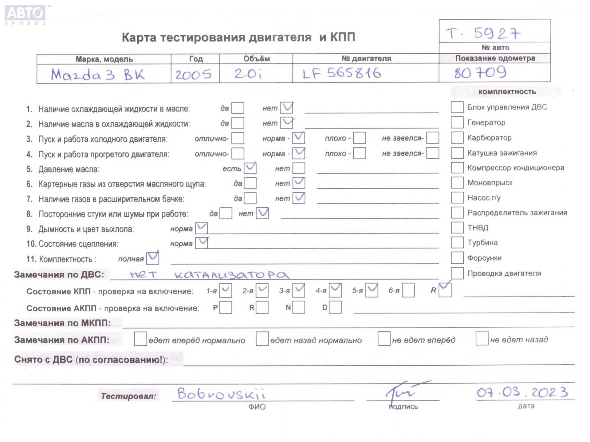 | Марка / Модель / Год: | Mazda 3 (2003-2008) BK 2005 |