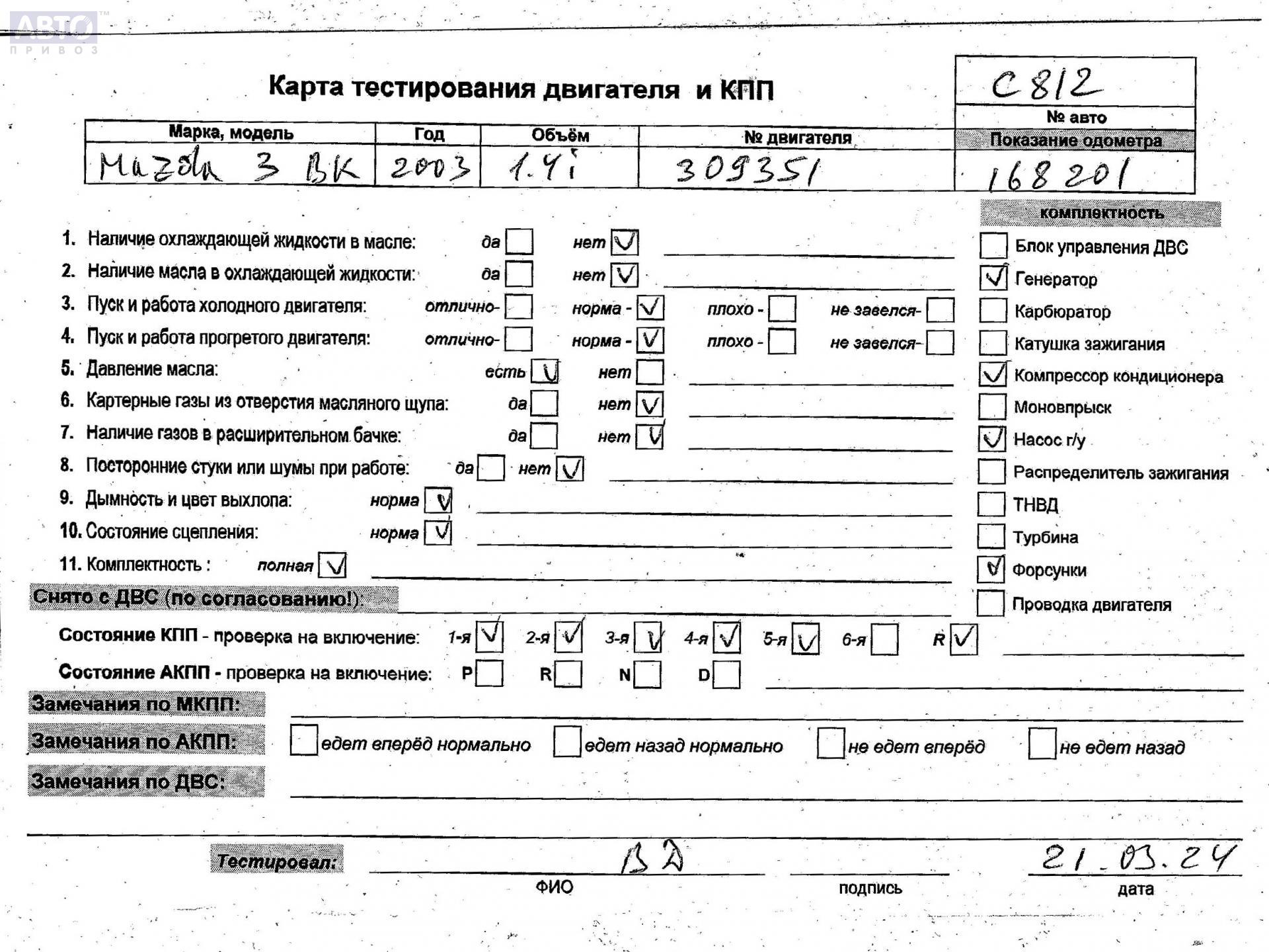 | Марка / Модель / Год: | Mazda 3 (2003-2008) BK 2003 |